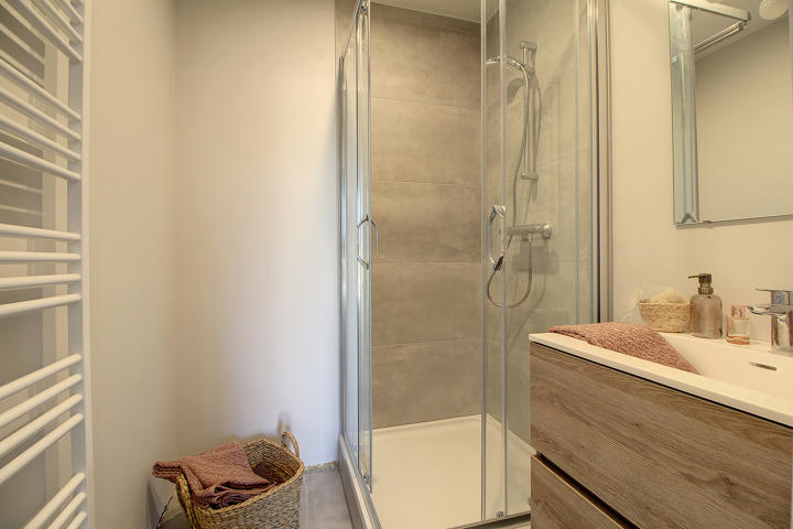 : hall d`entrée avec emplacement pour vestiaire, wc suspendu séparé, séjour avec cuisine équipée ouverte donnant sur une belle terrasse, cellier, 3 chambres, salle de bain avec douche et baignoire et meuble vasque