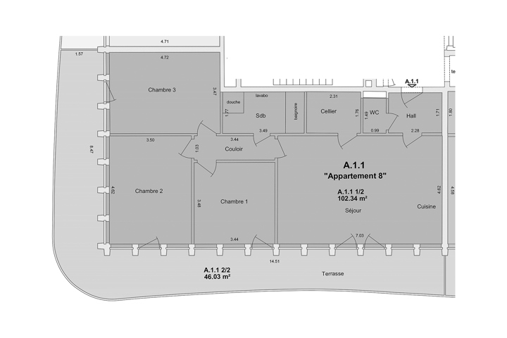 Les surfaces indiquées ne sont pas des surfaces habitables mais des surfaces brutes, selon le code de mesurage appliqué en Belgique