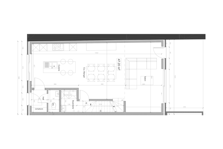 Les surfaces indiquées ne sont pas des surfaces habitables mais des surfaces brutes, selon le code de mesurage appliqué en Belgique