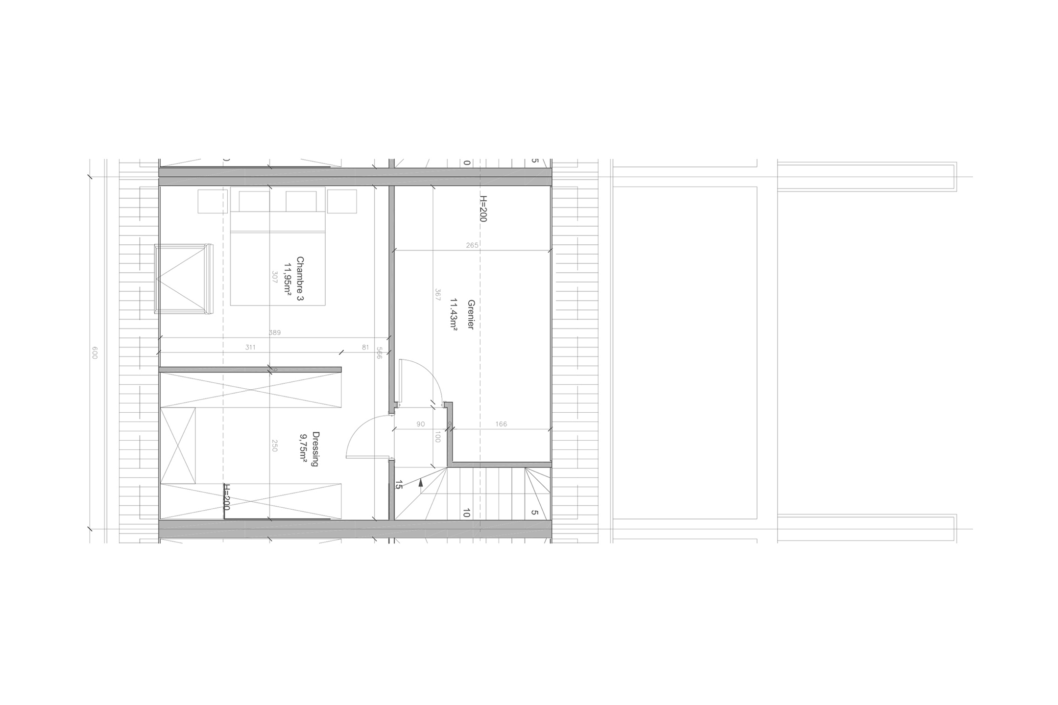 - Agencement : Au rez, hall d`entrée, WC séparé avec lave-mains, séjour avec espace cuisine (cuisine non comprise), buanderie. Au premier, 2 chambres, salle de bains avec douche et baignoire, meuble vasque et WC séparé. Combles, 1 chambre, espace dressing et coin grenier