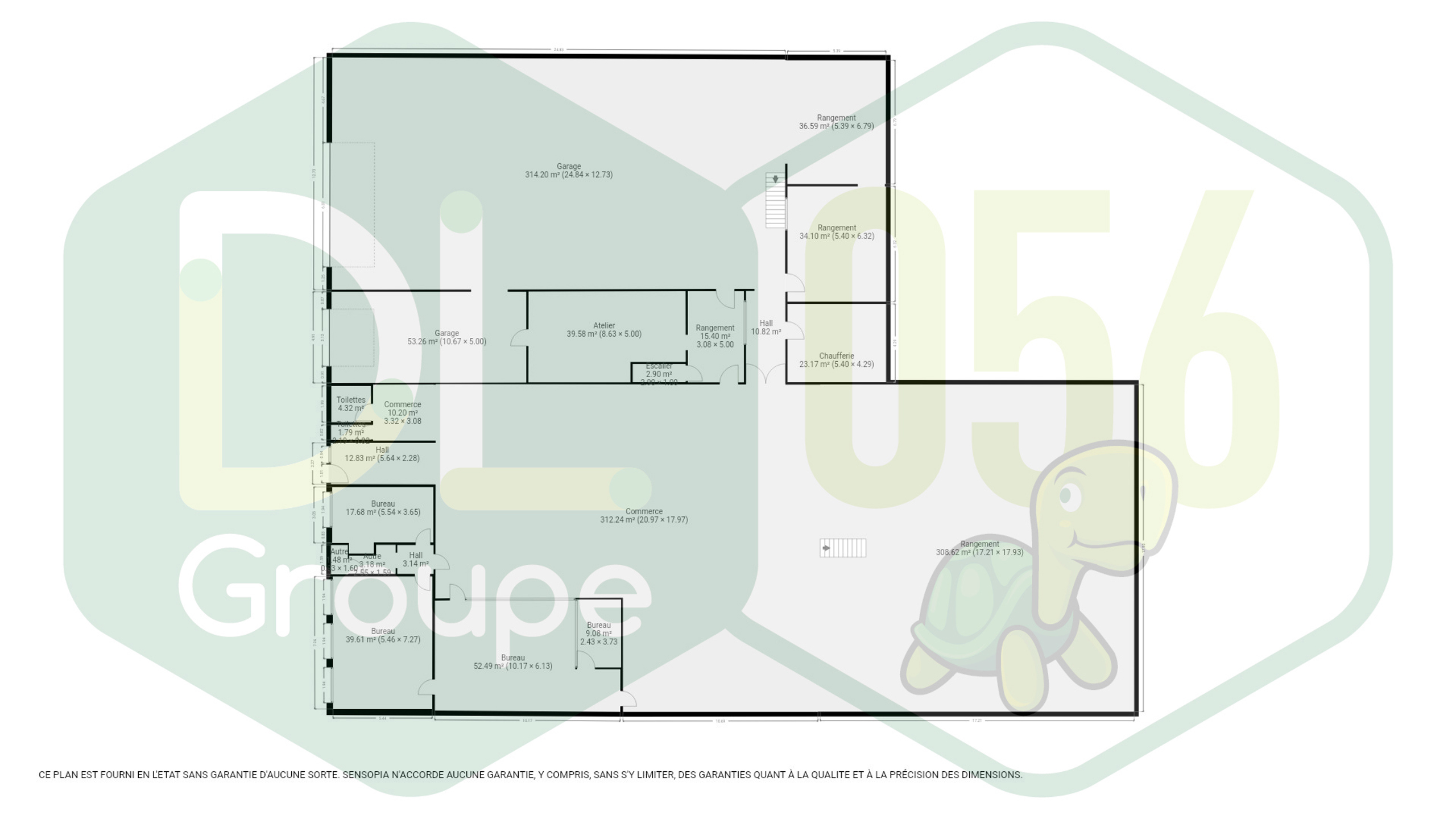 Stockages : 300 m², 67 m², 65 m², 51 m², 32 m²