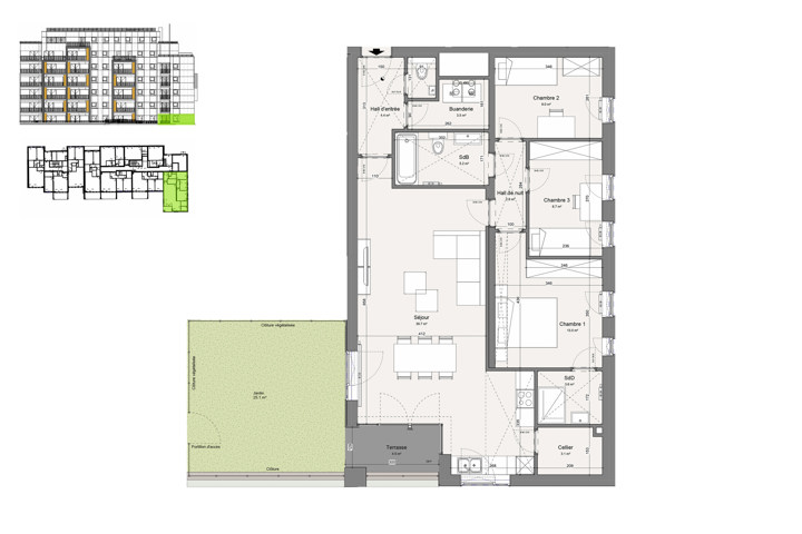 - Espaces verts : îlot végétalisé et verger accessibles aux résidents