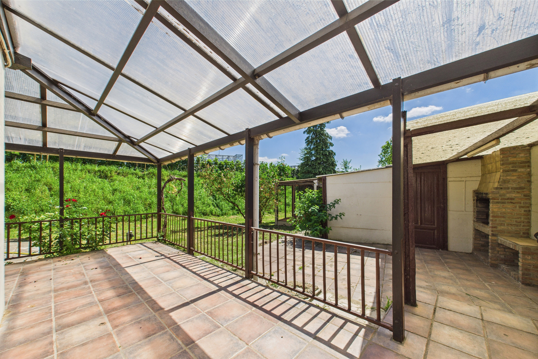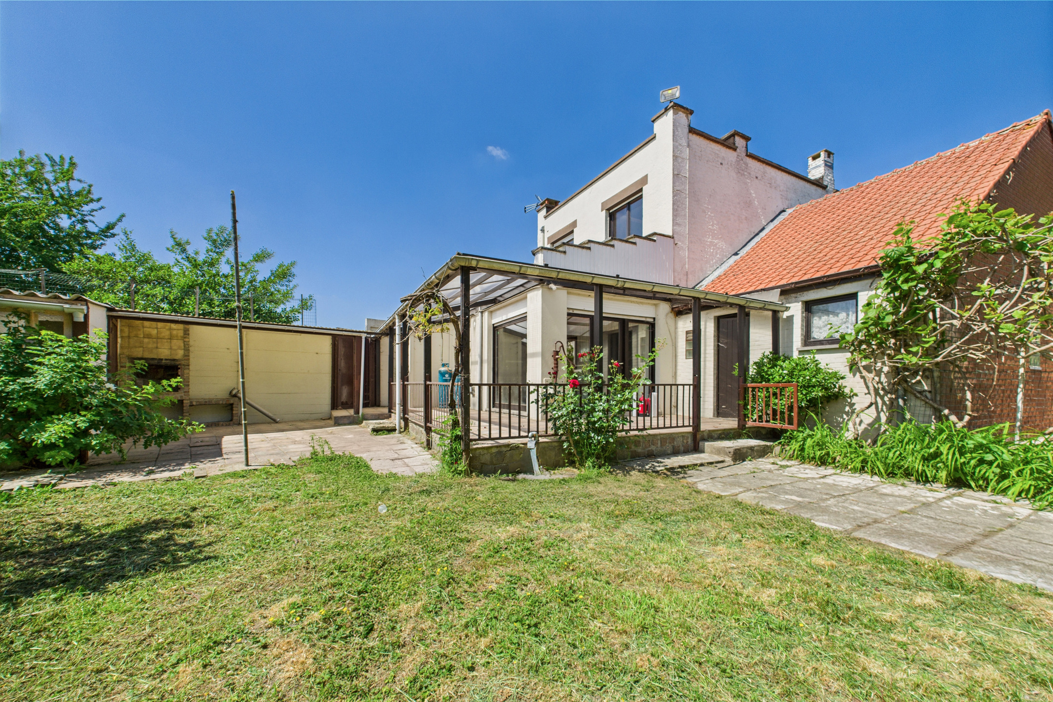 À l’extérieur, vous profiterez d’une grande terrasse carrelée en "L" avec pergola, d’un jardin clôturé exposé SUD-OUEST, d’une remise et d’un parking privatif pour 3 à 4 voitures.