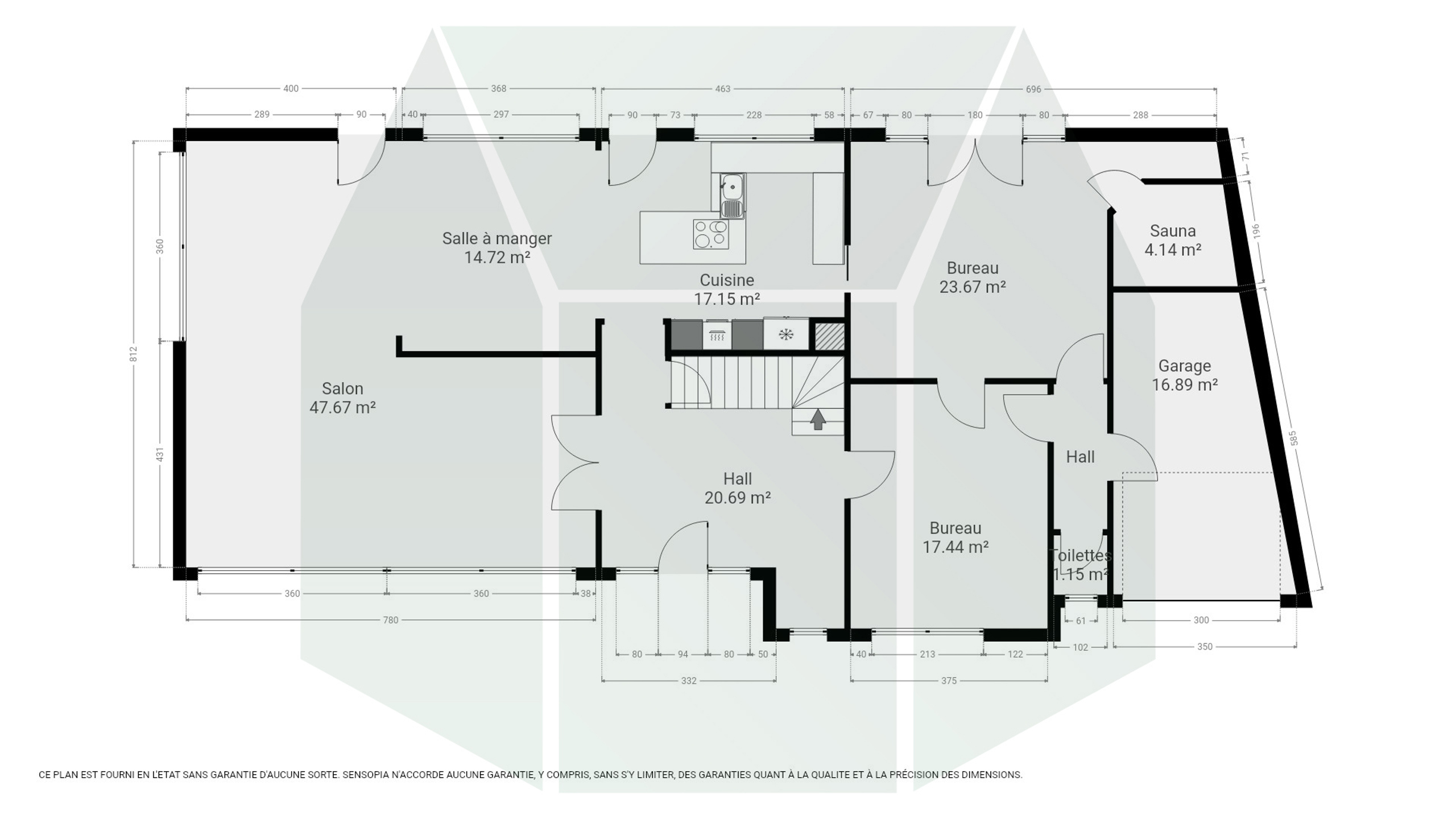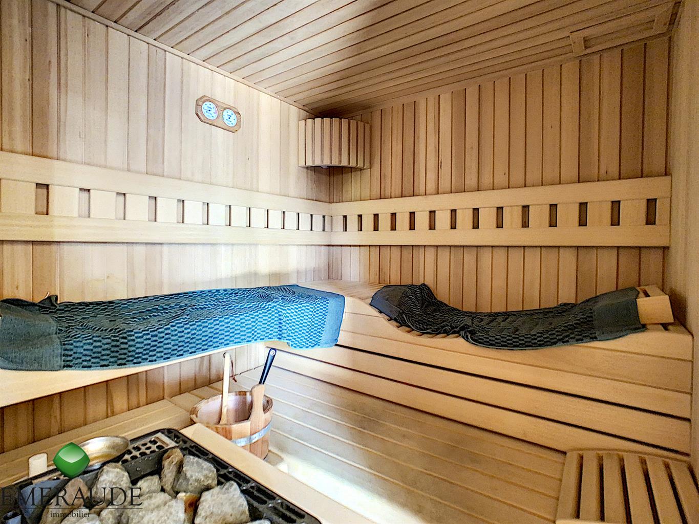 Le rez-de chaussée possède également un bureau, un vaste espace de détente équipé d`un sauna sur mesure, et d`une salle de douche. Cet espace peut être considéré comme suite parentale.