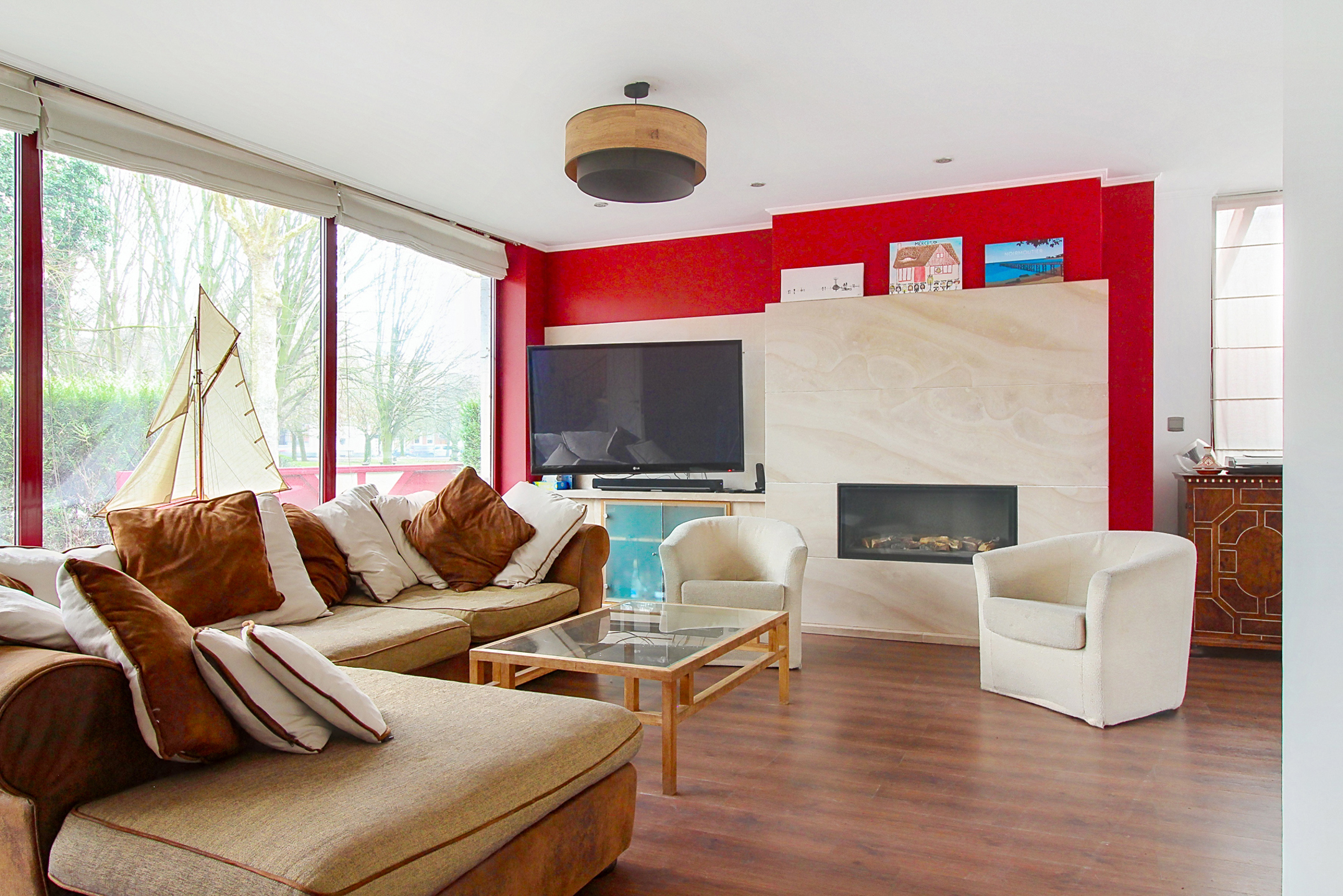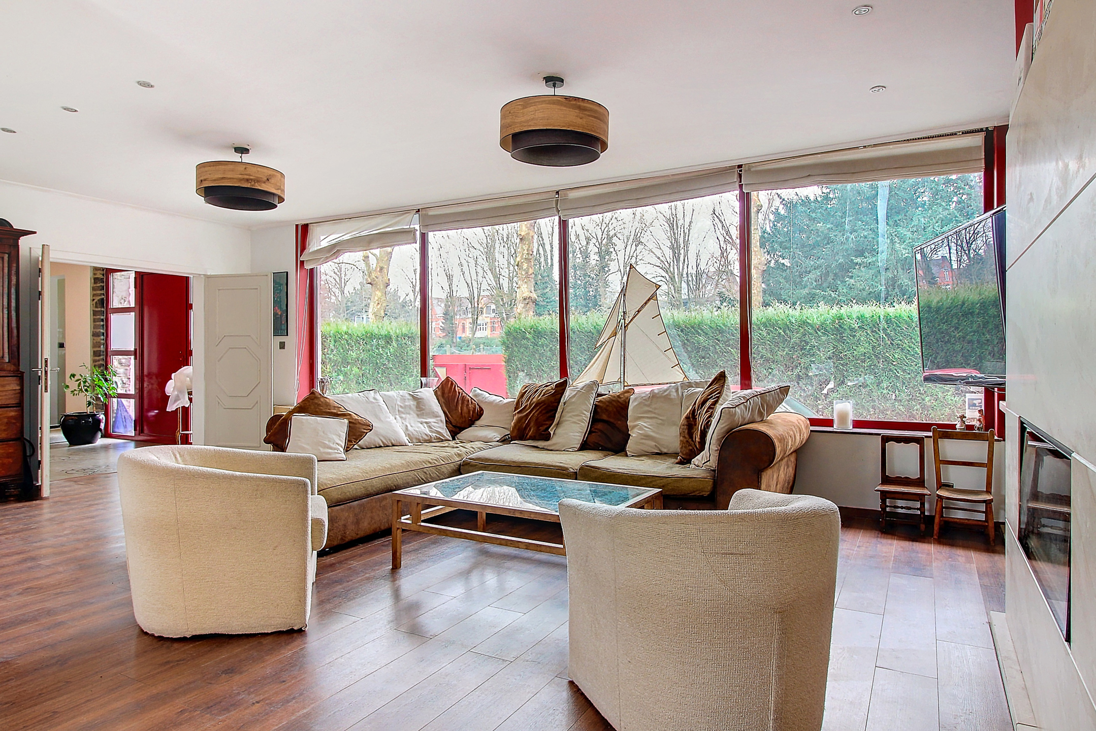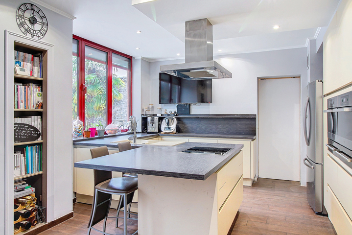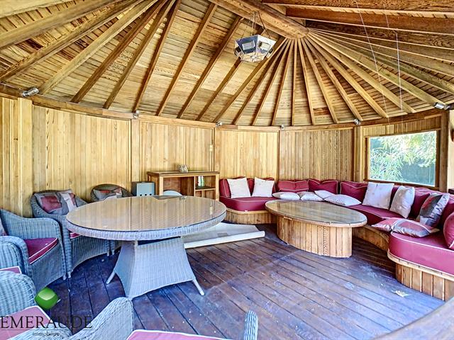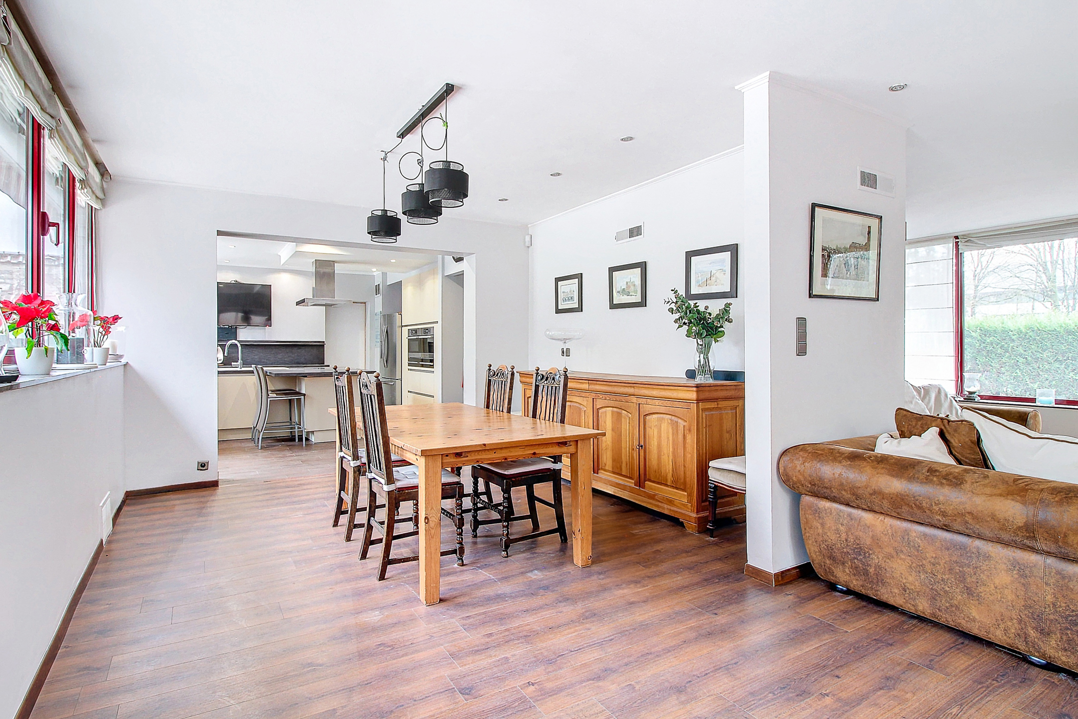 Le salon/séjour ouvert s`étend sur plus de 60m², et communique avec une cuisine américaine complètement équipée d`où vous profiterez de l`agréable vue sur le jardin et sa piscine.