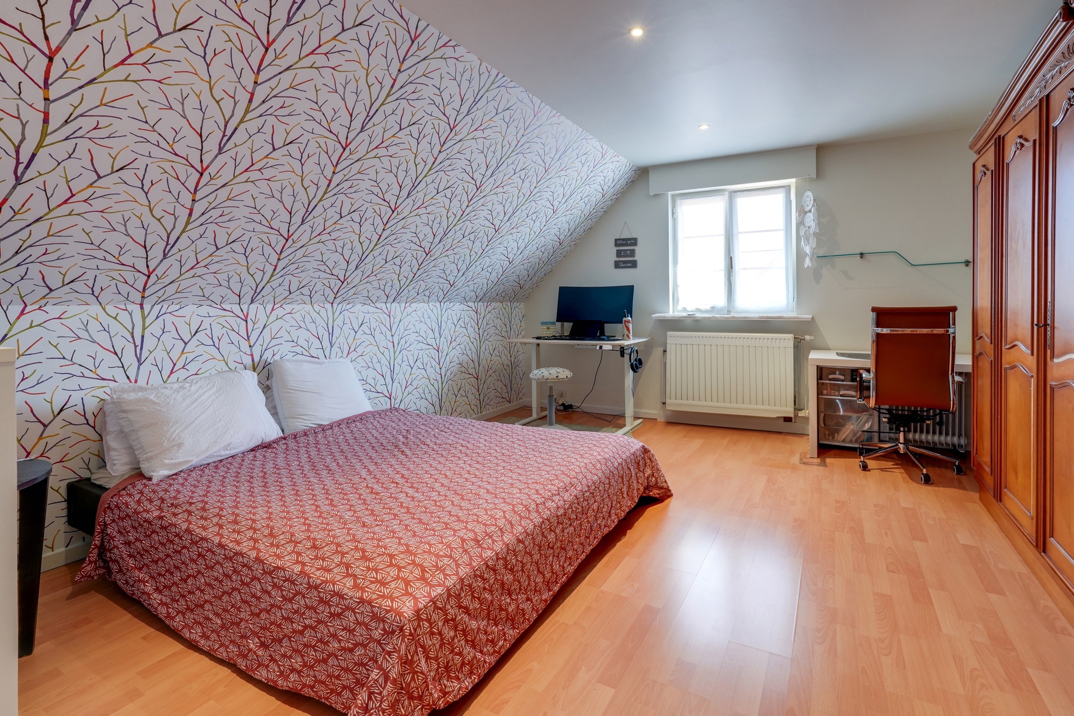 Au 1er étage : hall de nuit, WC suspendu, 3 magnifiques et spacieuses chambres dont 1 avec dressing fait sur mesure, 1 superbe salle de bains avec baignoire, douche et double meuble lavabo, pièce supplémentaire offrant un second dressing, grenier sur toute la longueur de l’habitation.