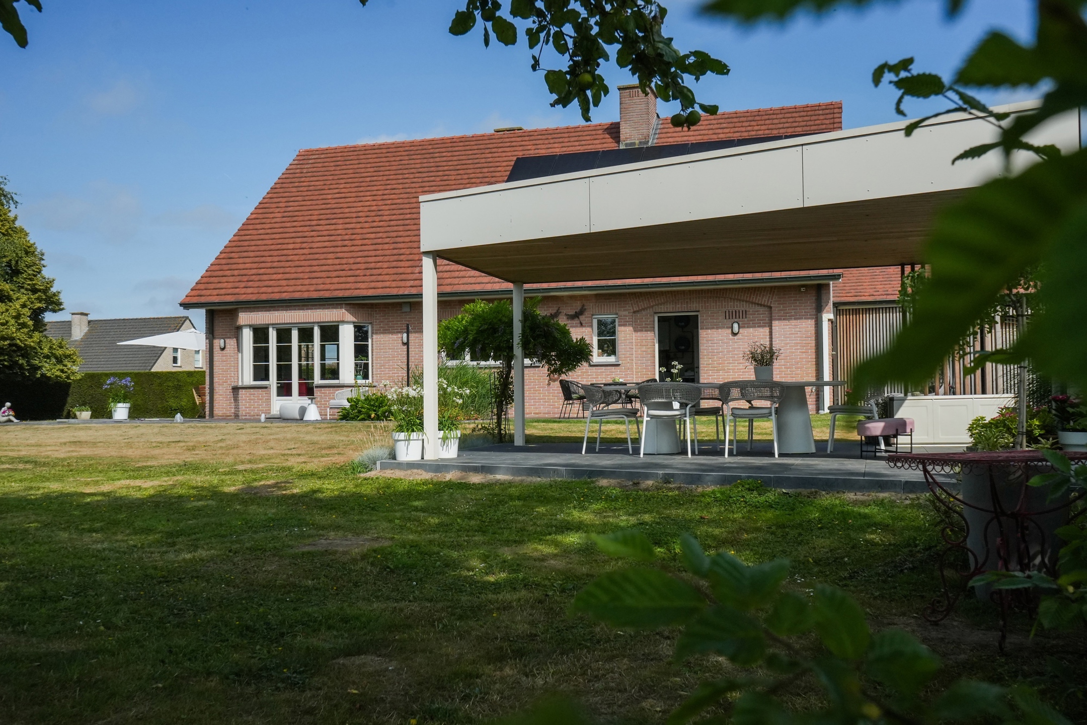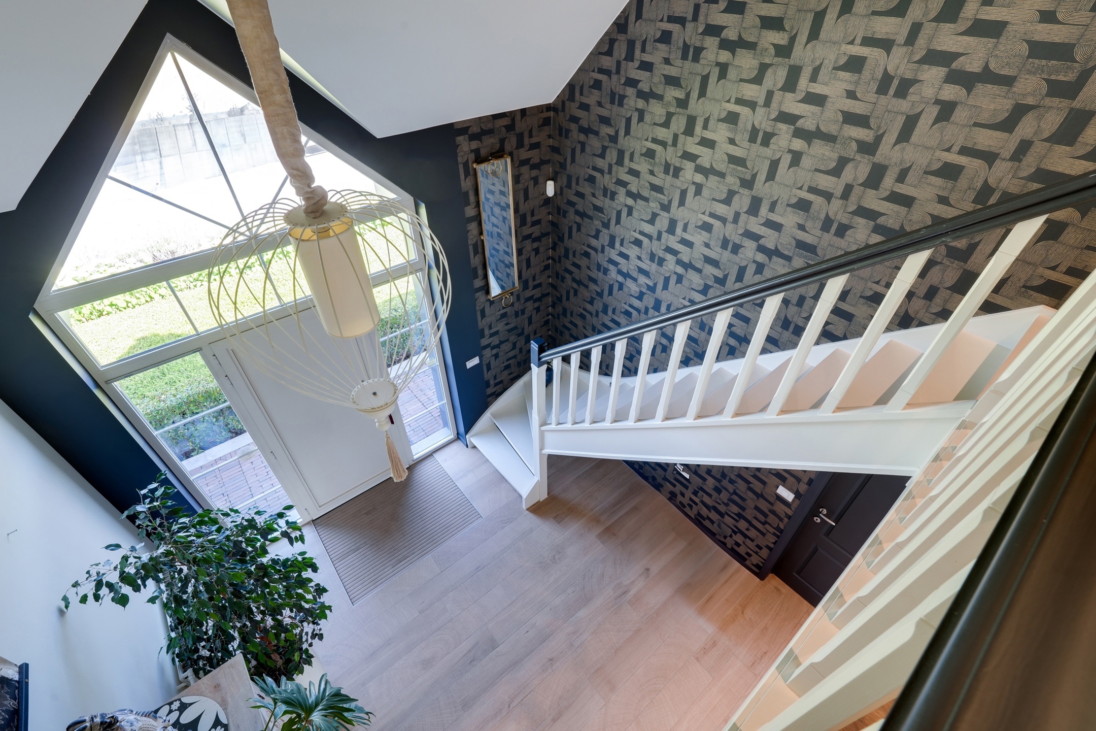 Au rez: Vaste hall d`entrée avec escalier apparent, vestiaire, WC suspendu avec lave-mains, spacieux bureau ou chambre de 23m² avec accès indépendant (idéal pour profession libérale), superbe living lumineux de 50m² avec salon et salle à manger offrant une magnifique cheminée en marbre avec insert au gaz, belle et grande cuisine équipée avec plan central offrant un coin repas composée d`un four intégré, taques vitro, hotte, lave-vaisselle, plan de travail en granit et double évier inox, grande buanderie et cellier séparé, carport attenant à l`habitation, belle terrasse carrelée et magnifique jardin arboré avec pergola.