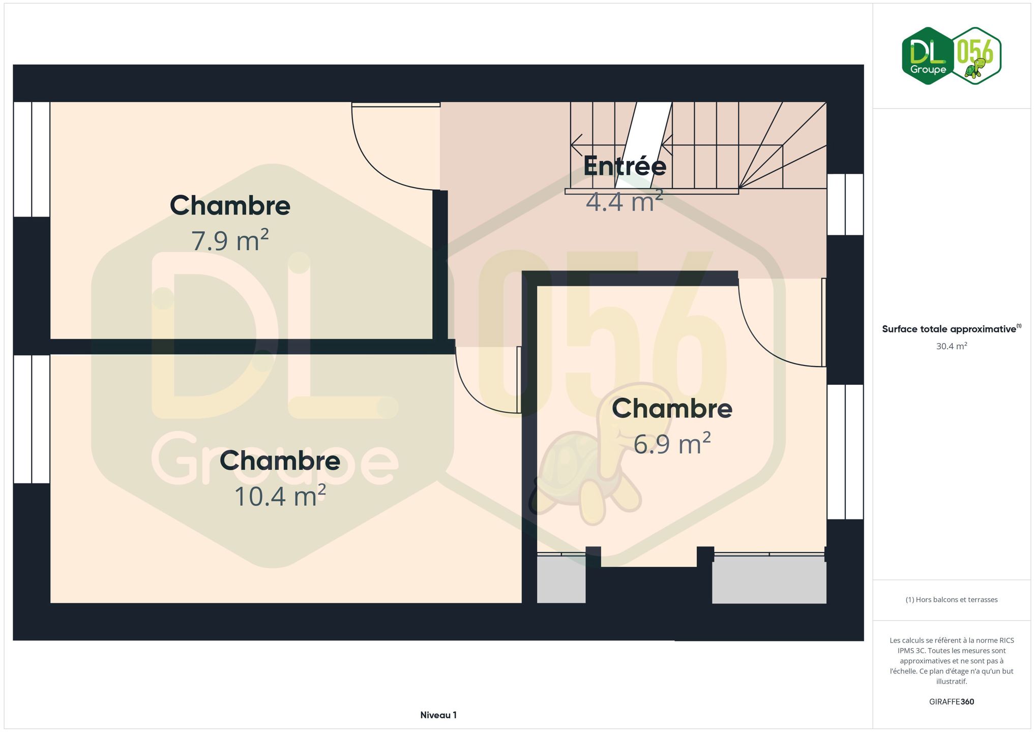 Au premier étage, le hall de nuit dessert trois chambres avec parquet.
