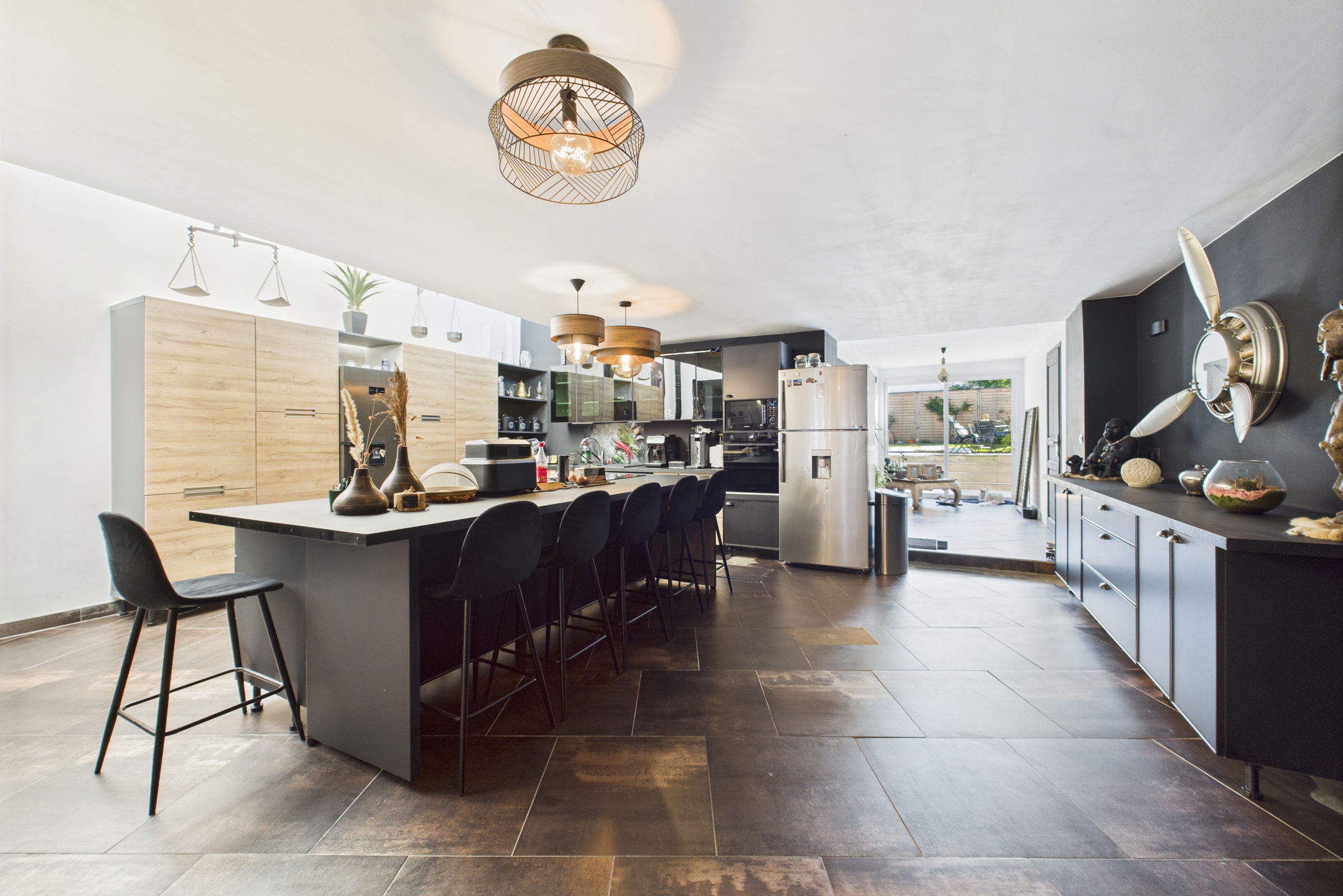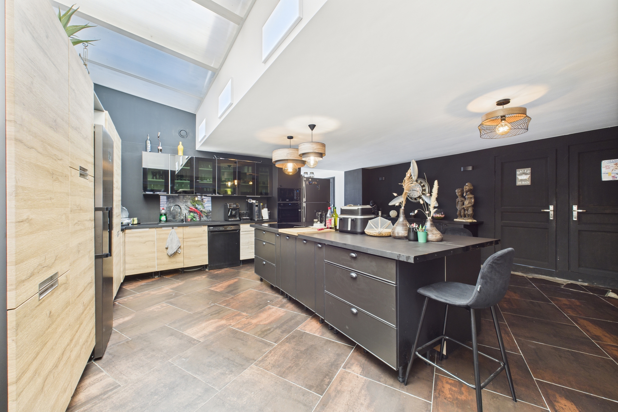 Au rez-de-chaussée, une spacieuse pièce de vie lumineuse comprenant un salon, une salle à manger et une cuisine ouverte entièrement équipée, rénovée il y a un an et demi (frigo, lave-vaisselle, taque vitrocéramique, îlot central). Vous y trouverez également une salle d’eau, ainsi qu’une salle de bain avec baignoire en fonte, douche à l’italienne, meuble lavabo simple vasque, [..]