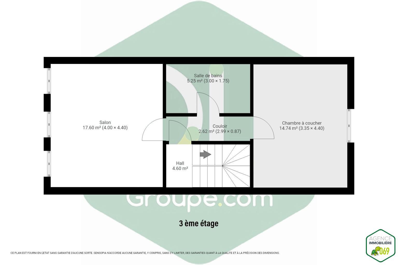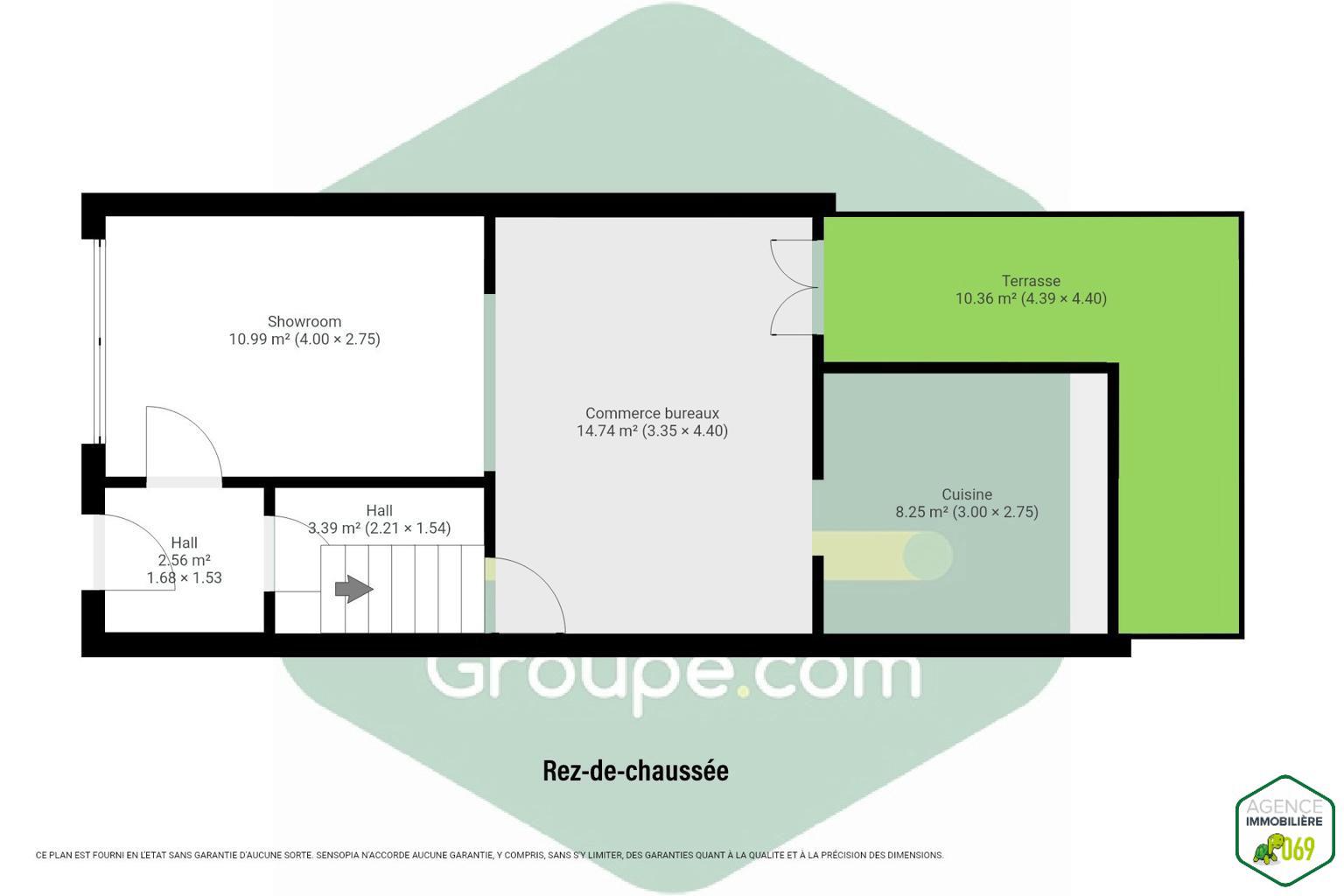 Rez-de-chaussée (surface commerciale ± 54 m²) :
