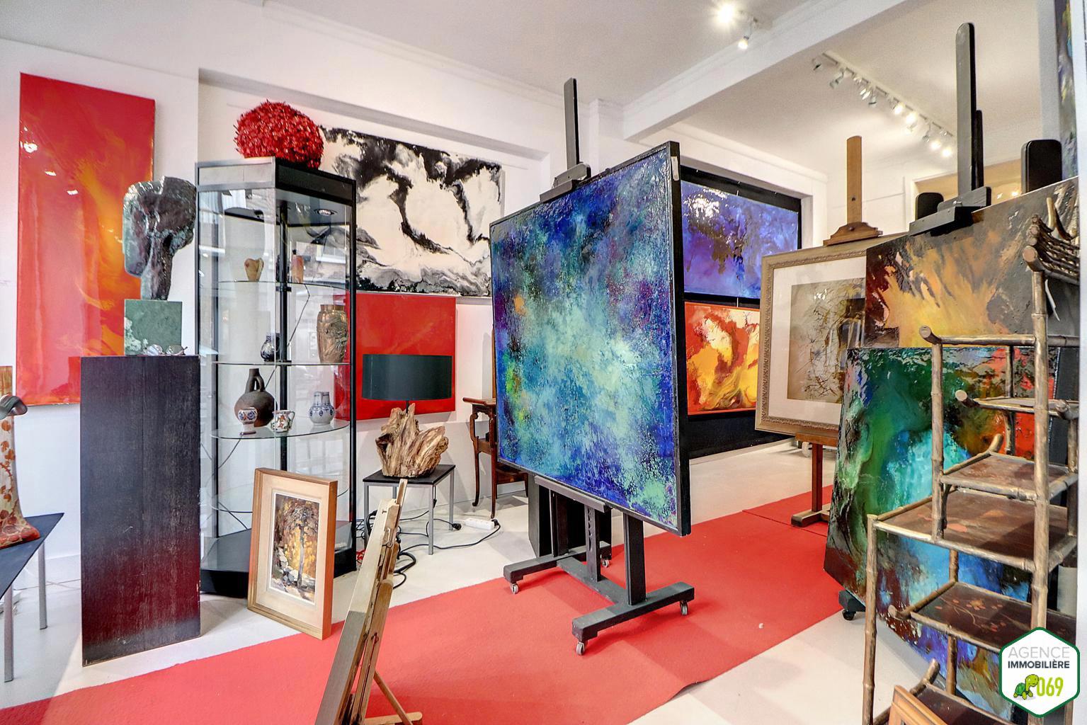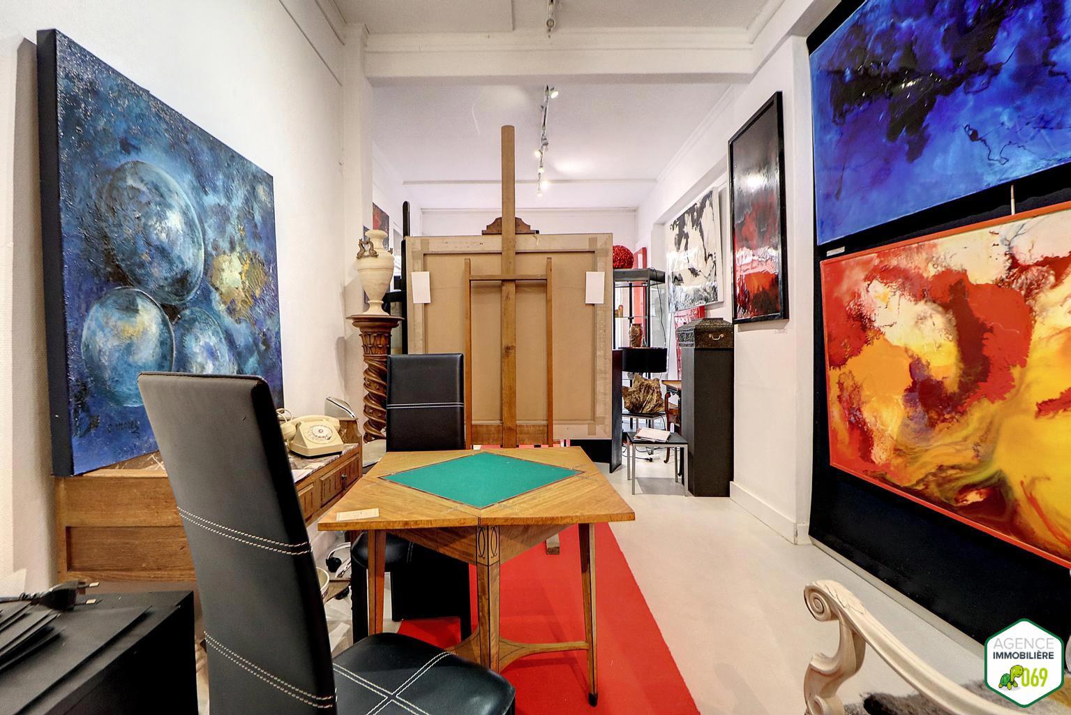 Showroom, arrière-pièce, cuisine, WC et terrasse.