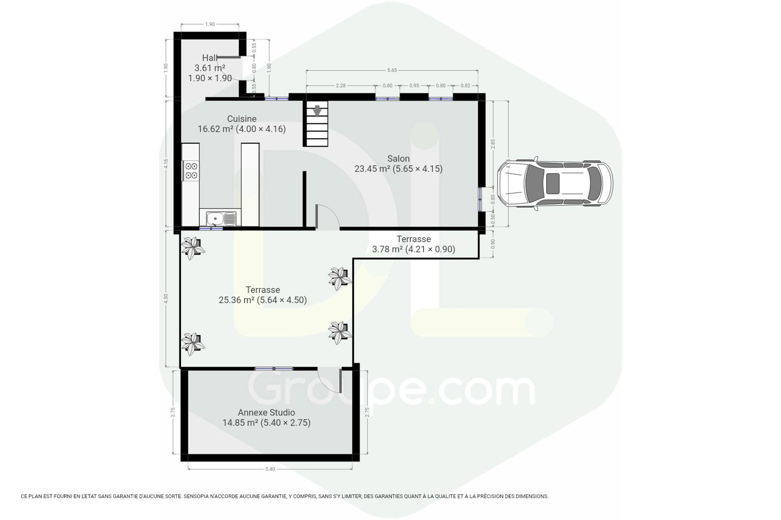 Une agréable terrasse avec accès latéral. Une seconde entrée indépendante permet d’accéder directement à la terrasse et au studio.