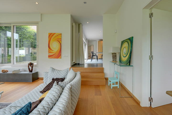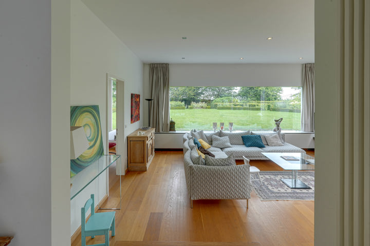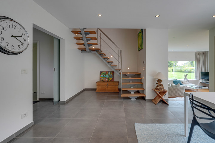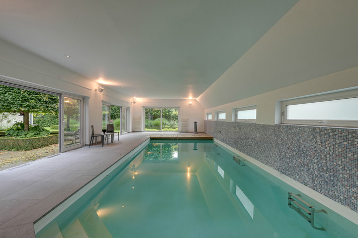 L’habitation se compose au rez-de-chaussée d’un vaste salon avec vue imprenable sur le jardin paysagé exposé ouest, d`une cuisine full-équipée avec ilot central, d`une salle à manger avec accès direct sur la terrasse exposée sud, d`un bureau, d`une piscine intérieure chauffée, d`une chambre avec salle-de-bains et d`un double garage.