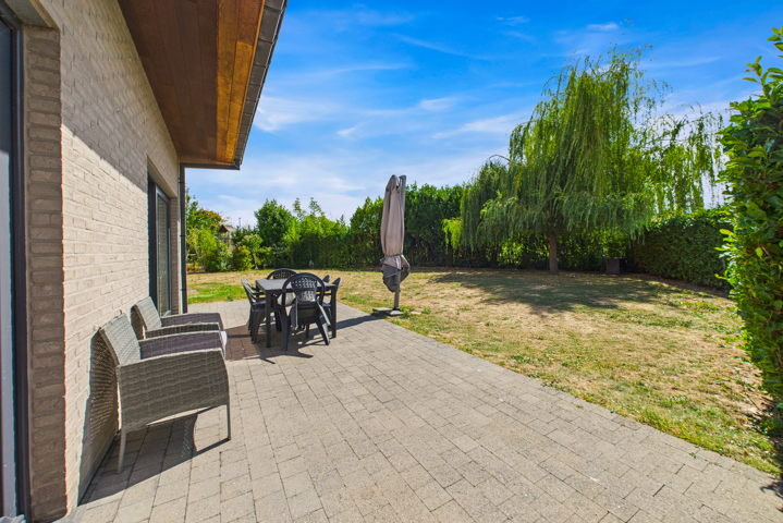 Extérieur: Terrasse en pavés autobloquants et agréable jardin exposé plein sud. Parking privé à l’avant pour 2 à 3 voitures.
