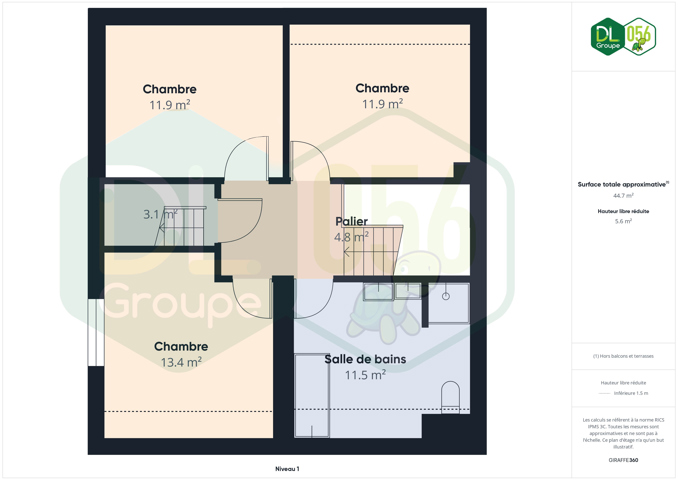 Au 2e étage: Grenier entièrement isolé et aménagé en une 4e chambre, accessible via un escalier fixe situé sur le hall de nuit.