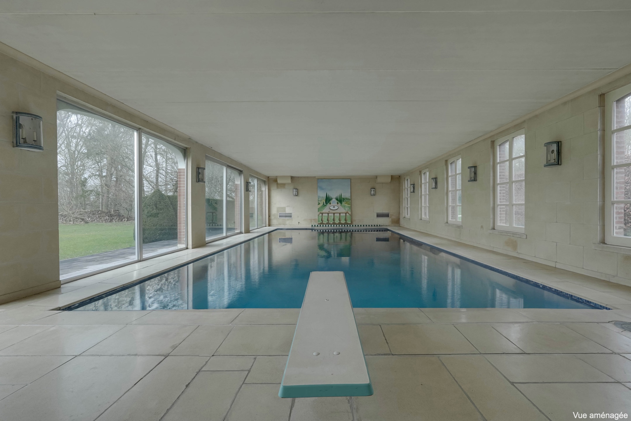 Vaste hall d`entrée, boudoir feutré, majestueux SALON DE RÉCEPTION (feu ouvert en pierre naturelle), 7 chambres (2 au rez, 5 à l`étage), plusieurs salles d`eau, cuisine, office, BUREAU, … ne sont que quelques uns des atouts de cette Maison avec un grand M. Vous profiterez également d`un grand garage pour 5-6 véhicules et d`une très GRANDE PISCINE intérieure. Les sous-sols ne sont pas en reste : SOUS TOUTE LA MAISON principale on retrouve de nombreuses et grandes caves (dont deux caves à vin) et une SALLE DE RECEPTION actuellement à usage de salle de chasse sont à votre disposition. Au total, environ 647 m² de surface.