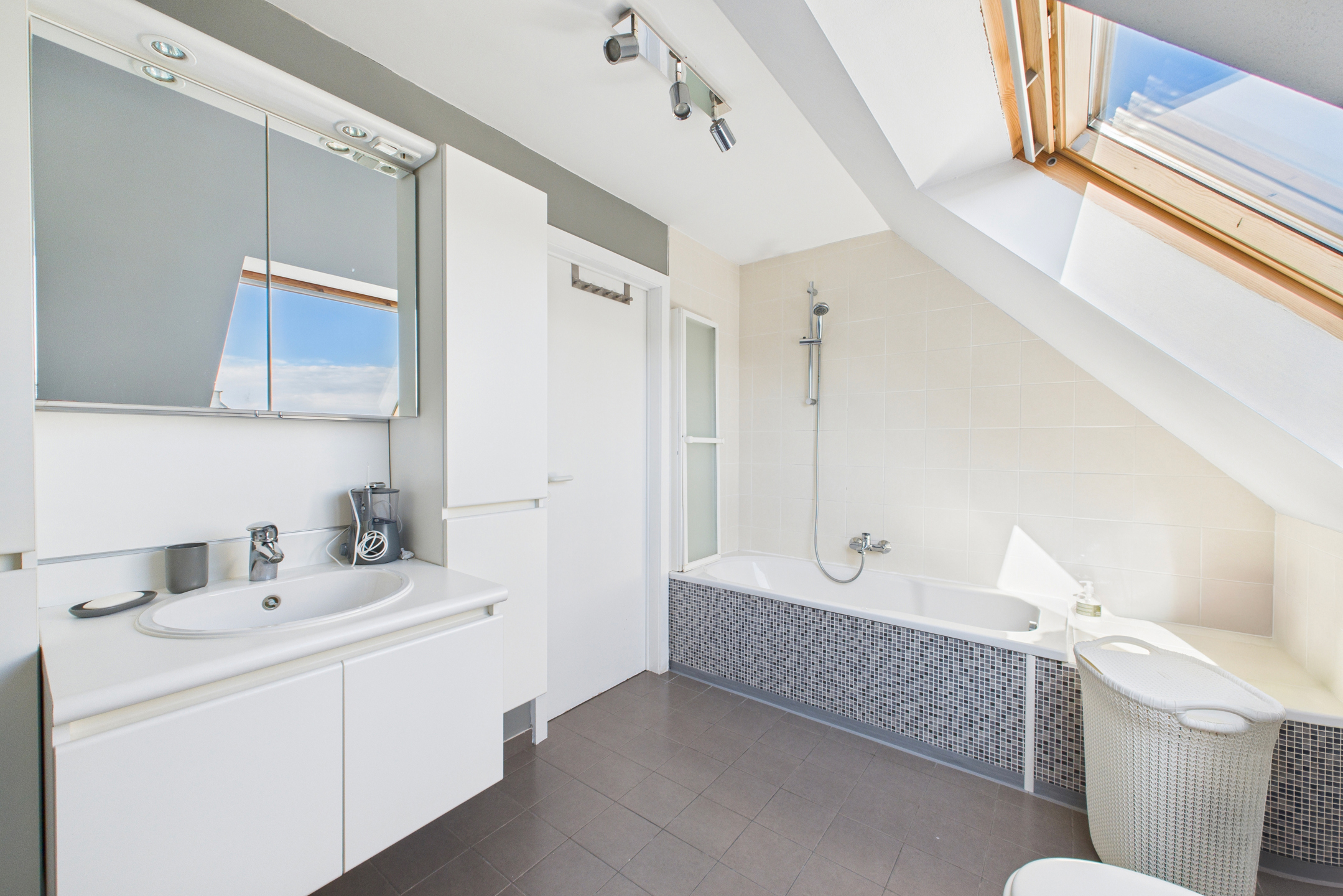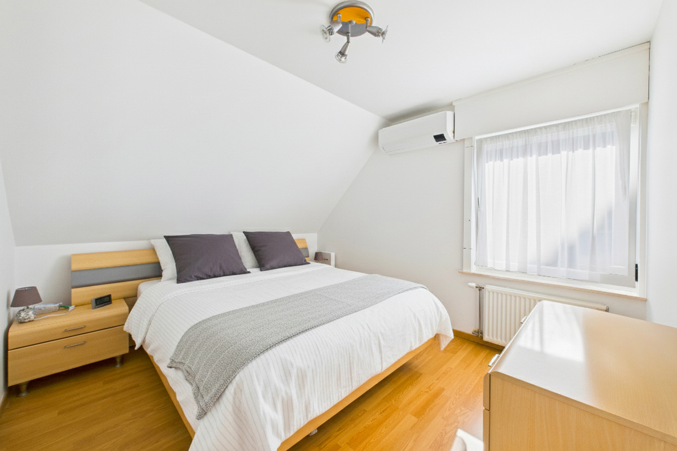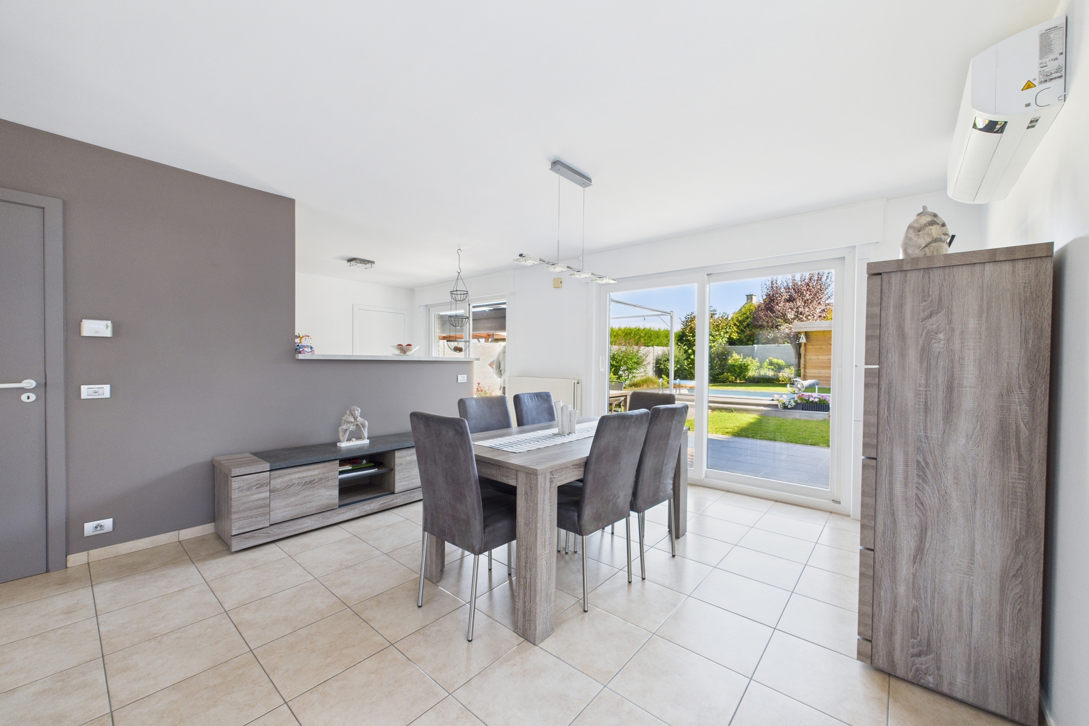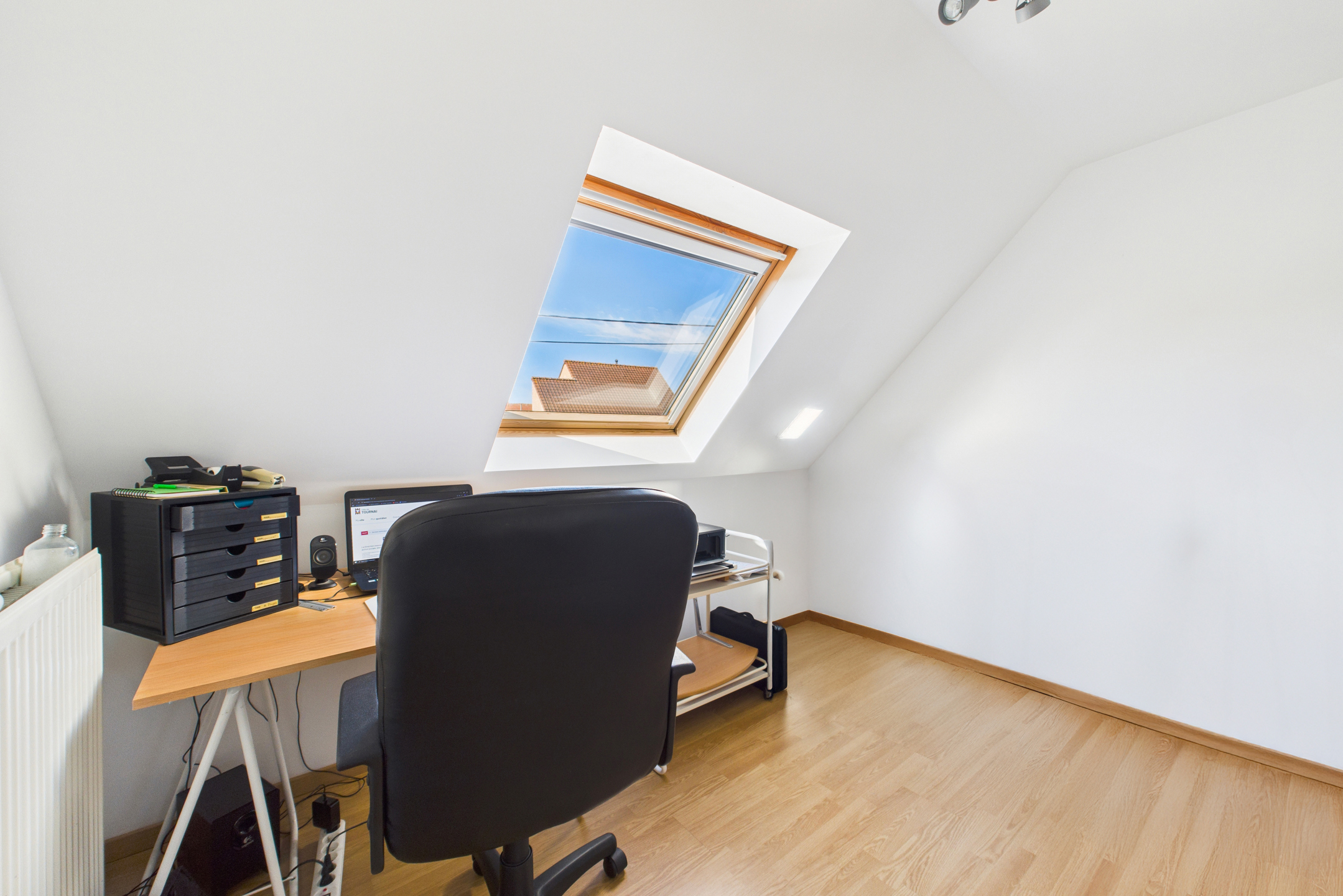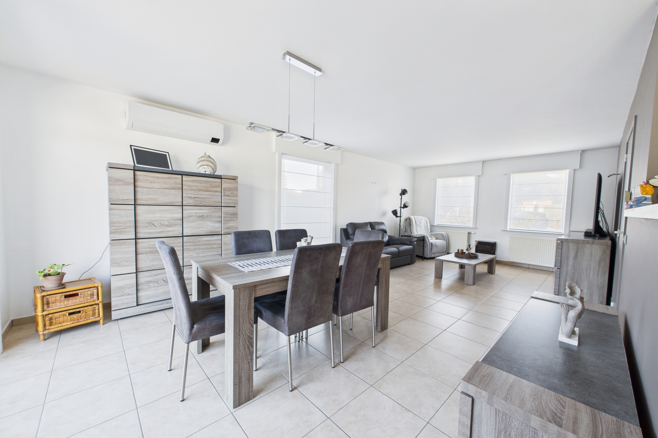 Maison de 2006 idéalement située dans un secteur prisé, proche de toutes commodités. Chauffage central gaz avec chaudière à condensation « Vaillant », climatisation réversible (séjour et chambre), châssis PVC double vitrage avec persiennes, Velux bois double vitrage avec stores occultants, carrelage au rez, parquet dans les chambres, porte de garage sectionnelle, 13 panneaux photovoltaïques, électricité conforme jusqu`en 2050, PEB B, citerne d’eau de pluie de 7.500L avec groupe hydrophore (machines à laver, toilettes, robinet de service).