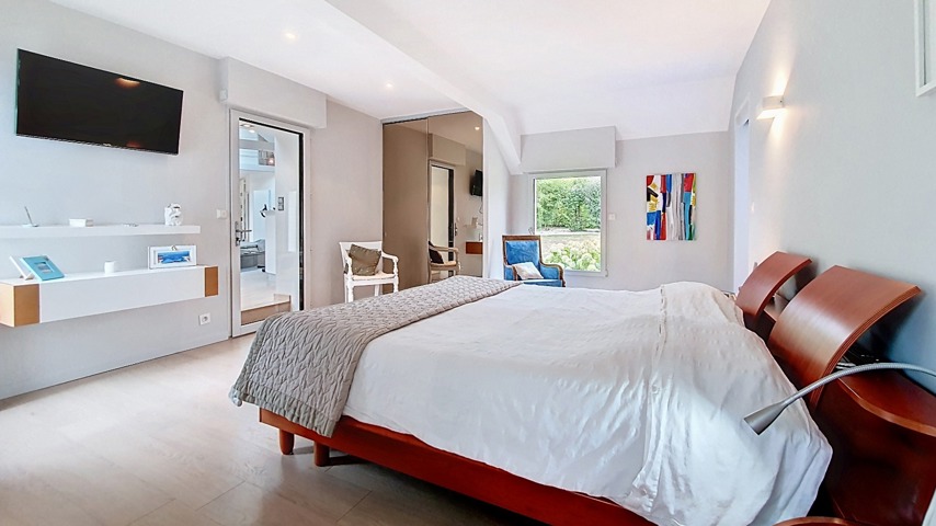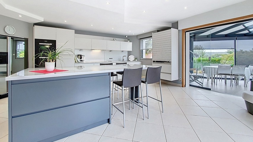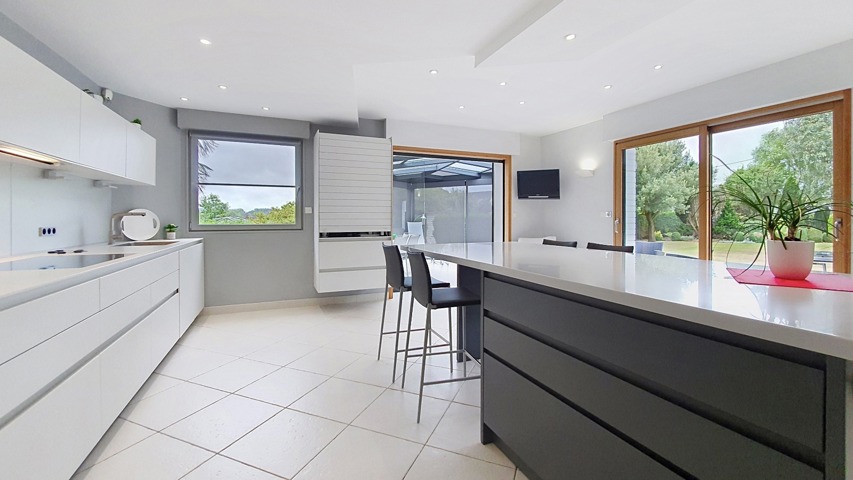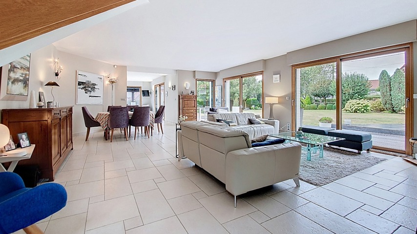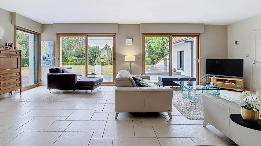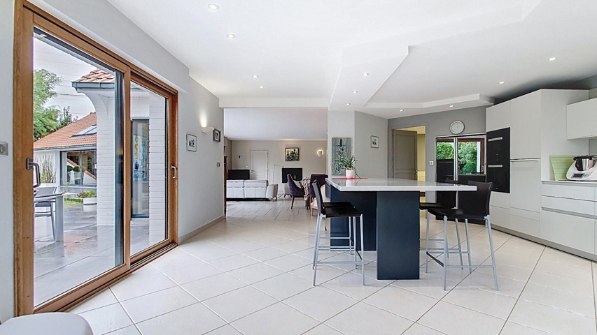 Situé dans un village à 19 km de Wimereux : villa contemporaine d`architecte de 285 m² en semi plain-pied aux volumes généreux et aux prestations haut de gamme. Bâtie en 2OOO sur un terrain de 3.594 m², ce bien permet une possible vie de plain-pied avec sa suite parentale en rez-de-chaussée. Cette maison offre un bel espace bien-être de 67 m² équipé d`un bar, sauna, hammam et d`un jacuzzi. Elle dispose aussi d`un grand garage carrelé de 55 m² et présente : Au rez-de-chaussée : hall d`entrée, séjour lumineux de 46 m² avec espace salon équipé d`un poêle à pellets, cuisine ouverte haut de gamme de 28 m² qui donne sur la véranda, cellier, Suite parentale de 37 m² disposant d`une chambre, un dressing et une salle de bain. Un espace bien-être de 67 m² composé d`un bar, d`un jacuzzi, d`un sauna et d`un hammam. Buanderie et toilettes indépendantes avec lave-mains. A l`étage, sur dalle béton : Un vaste palier de 25 m² aménagé en partie en bureau-bibliothèque distribue 2 chambres de 14 m², une salle de bain de 10 m² et toilettes séparées. Grenier aménageable de 20 m² : Possibilité d`y aménager une 4ème chambre. Grand Garage carrelé de 55 m², 2 voitures, avec porte automatique et fenêtre. Une cave divisée en 2 parties de 30 et 17 m². Extérieurs : Abords soignés. Jardin d`environ 2.500 m² avec grande terrasse carrelée de 80 m². 2 abris de jardin, un potager et un 2ème accès au terrain.