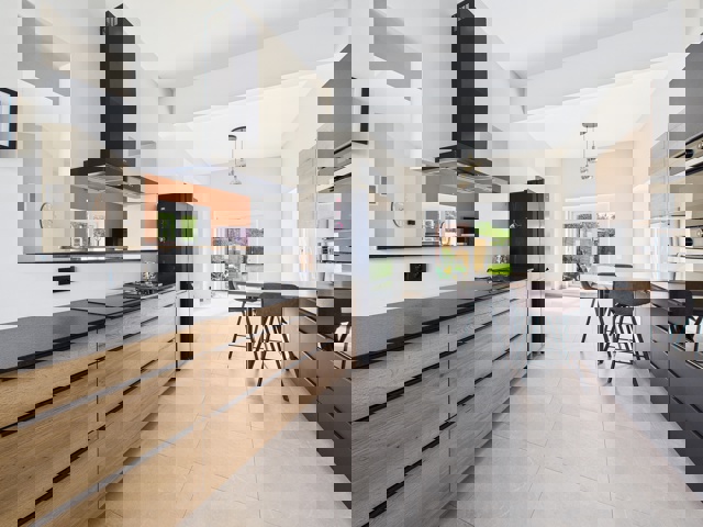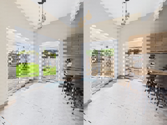Au rez-de-chaussée, vous trouverez un hall d’entrée, un spacieux séjour de ± 32 m² avec feu au bois, un coin cuisine équipée entièrement neuve (four, hotte, plaques gaz & induction, micro-onde encastré) ouvert sur une salle à manger de ± 22 m², un WC séparé ainsi qu’un garage de ± 20 m².