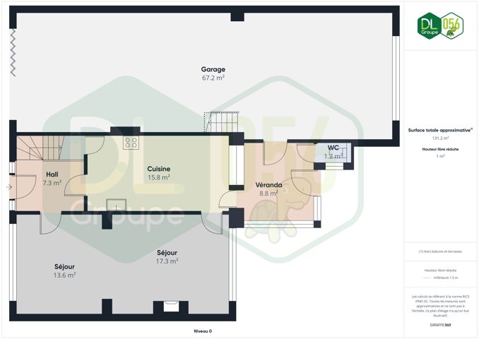 Au REZ : Un hall d’entrée avec escalier apparent, un séjour traversant de 31m2 (salon et salle à manger), une grande cuisine équipée attenante (plaque de cuisson vitrocéramique, hotte, four, évier, coin repas et nombreux rangements), une véranda offrant une agréable vue sur l’extérieur, un WC suspendu et un immense garage de 67m2, une cave saine.