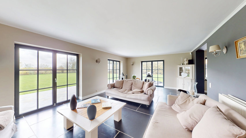 Découvrez cette magnifique propriété de plus de 330 m² habitables, implantée dans un cadre paisible et verdoyant, profitant d’une vue panoramique sur la campagne. Ici, aucun vis-à-vis – tranquillité et intimité sont les maîtres mots.