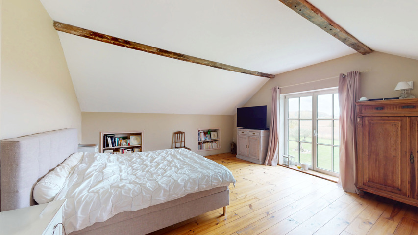 Une grande grange attenante vient compléter l’ensemble, offrant un espace supplémentaire considérable, parfait pour du stockage, un atelier, ou ou tout autre projet selon vos envies, à vous d’imaginer son futur usage.
