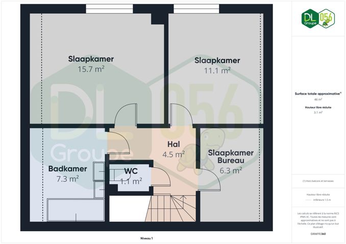 Au 2? étage : grenier de rangement isolé, accessible via escalier escamotable.
