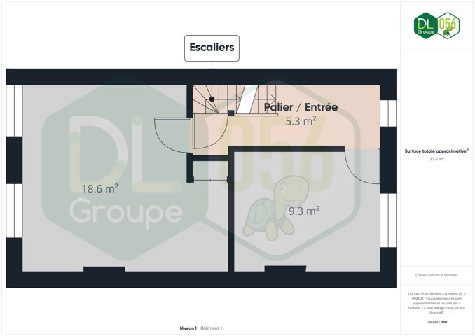 Au 1er étage : Hall de nuit desservant 2 chambres à coucher de 19m2 et 9m2 (dont une avec un placard intégré).