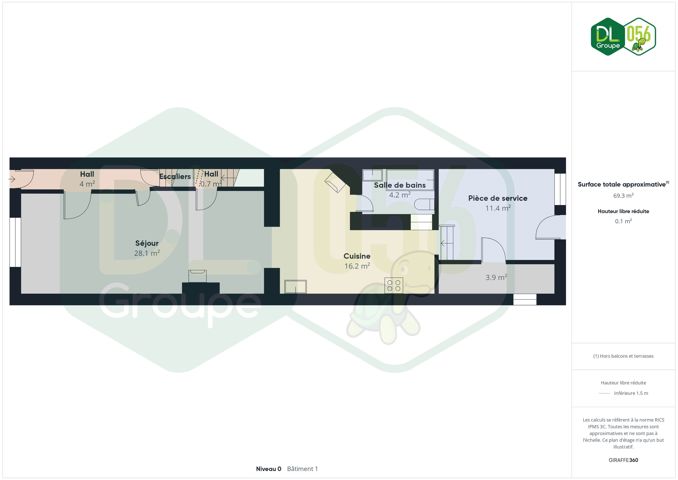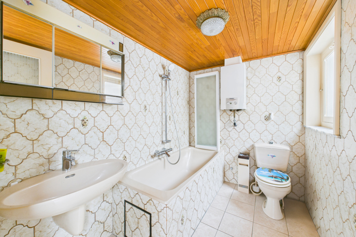 Au REZ : Un hall d’entrée desservant un lumineux séjour (salon et salle à manger), une cave saine, extension habitable desservant une cuisine équipée ouverte (plaque de cuisson, hotte, four, double évier, emplacement frigo et lave-vaisselle, nombreux rangements), une salle de bains entièrement faïencée composée d’une baignoire/douche, d’un lavabo et d’un WC, une arrière-cuisine/buanderie et une pièce de rangement.