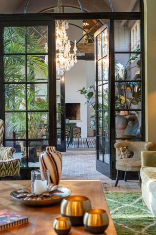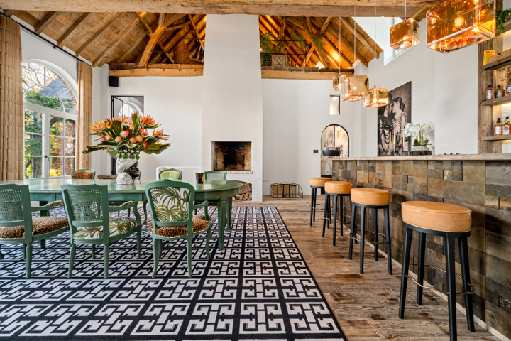 Au centre de la villa, une vaste orangerie relie les différentes pièces de vie, créant une atmosphère ouverte et accueillante. Elle s’accompagne d’un bar convivial avec vue sur la cave à vin, parfait pour des soirées agréables en bonne compagnie.