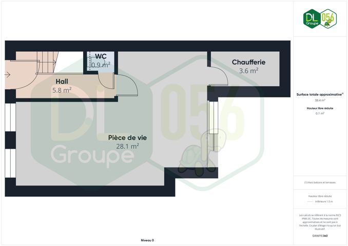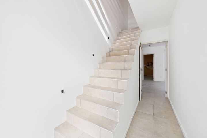 Au REZ : un hall d`entrée lumineux avec escalier apparent, un WC suspendu, une piece de vie en composée d’une cuisine ainsi que d’un séjour (salon et salle à manger) un coin buanderie/ chaufferie.