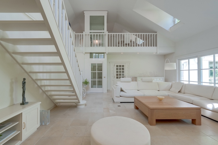• Salon de +/- 48 m², équipée de d`un ascenseur donnant accès aux différents étages