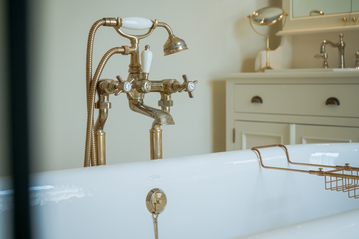 À l’extérieur, un jardin paysager sans vis-à-vis, parfaitement entretenu, s’étend vers un espace naturel préservé où biches et lapins sont parfois visibles.