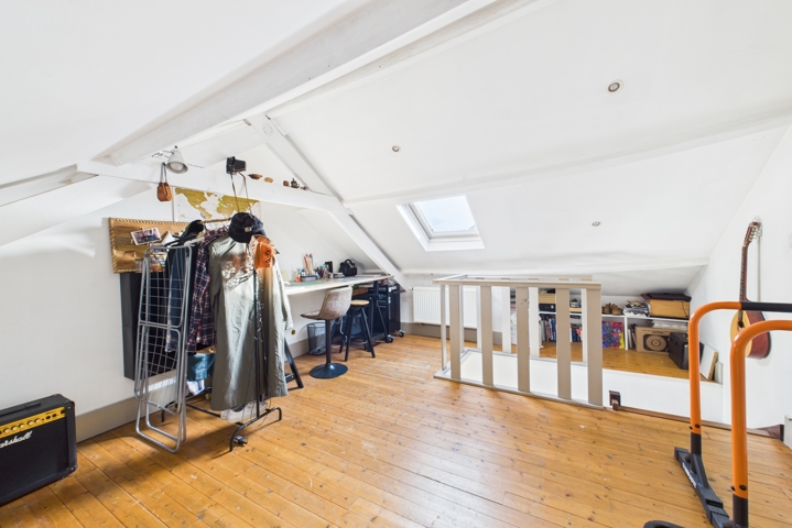 Au 2ème étage : Grenier aménagé en une 2e chambre à coucher de 21m2, accessible par un escalier fixe situé sur le hall de nuit.