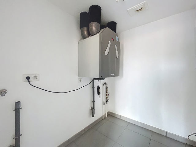 Buanderie avec arrivée et évacuation d`eau pour machine à laver,