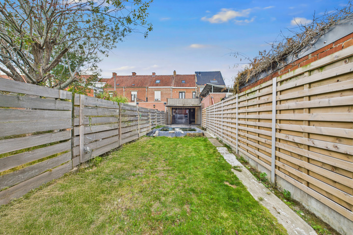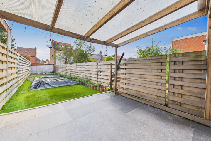 À l’extérieur, vous pourrez profiter d’une terrasse couverte carrelée et d’un jardin entièrement clôturé, idéal pour la détente ou pour les enfants qui jouent.