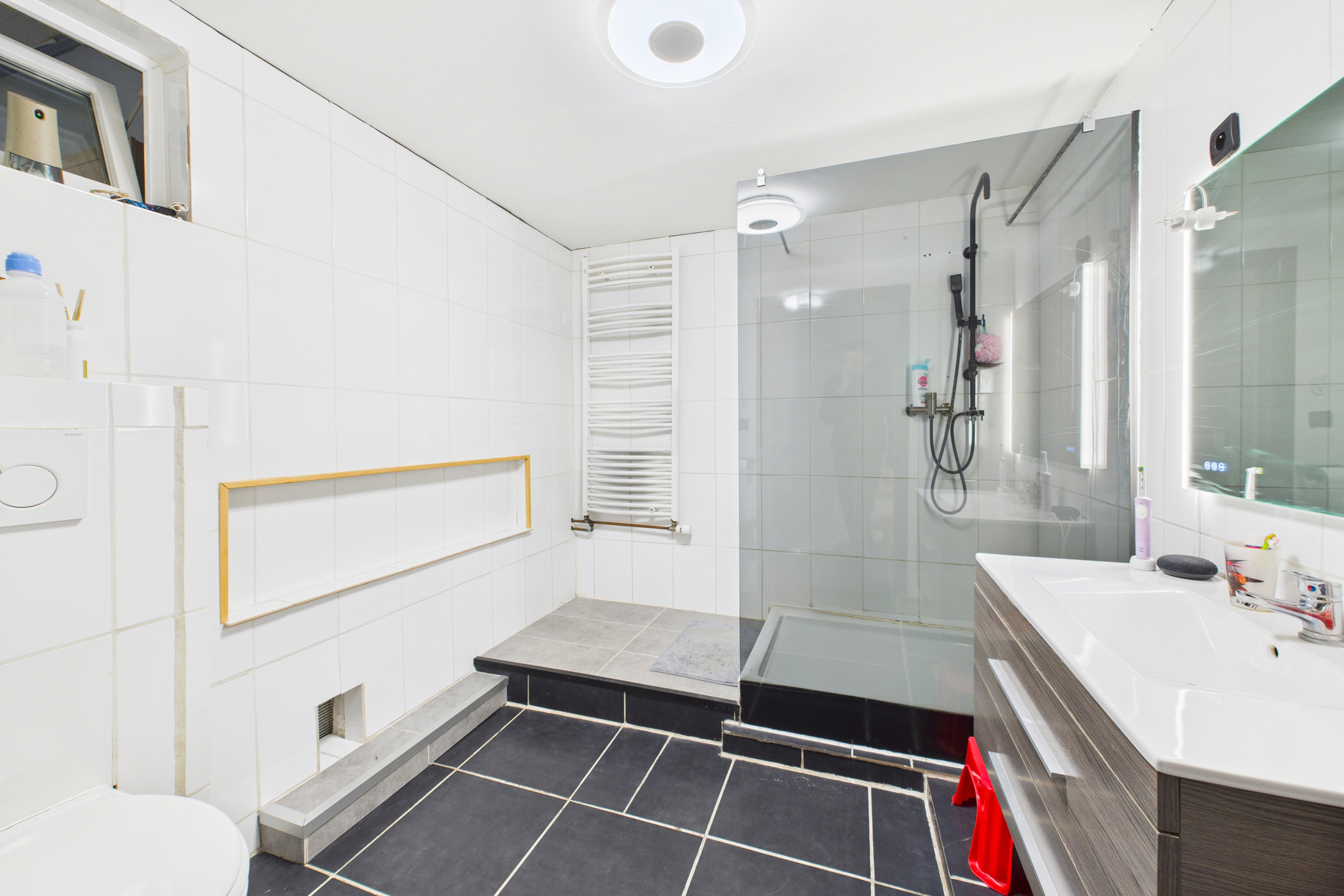 Au REZ : Un hall d’entrée, une chambre à coucher de 12M2 (pouvant également servir de bureau, salle de jeux, …), une buanderie avec espace chaufferie et laverie, une salle de bains composée d’une douche à l’italienne, d’un meuble lavabo, d’un sèche-serviette et d’un WC suspendu, extension habitable desservant une belle pièce de vie entièrement ouverte composée d’une [..]