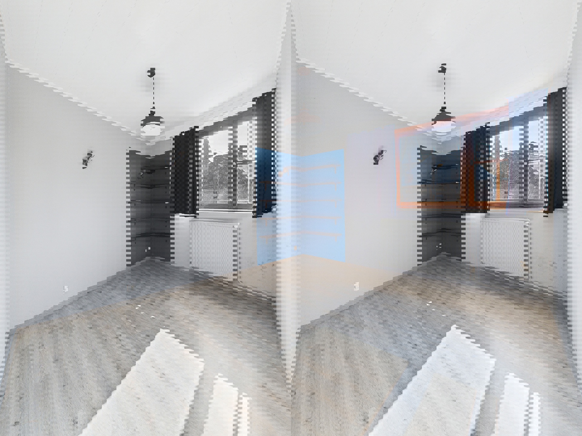 Au rez-de-chaussée, le hall d’entrée mène à un vaste séjour lumineux agrémenté d’un feu ouvert, directement relié à une pièce de cuisine. Celle-ci s’ouvre sur une terrasse et un grand jardin arboré, comprenant notamment un pommier. Un couloir dessert une salle de bain avec baignoire et lavabo, un WC séparé, ainsi qu’une buanderie/chaufferie équipée d’une chaudière ELCO. Accès également à une cave en sous-sol, idéale pour le stockage.