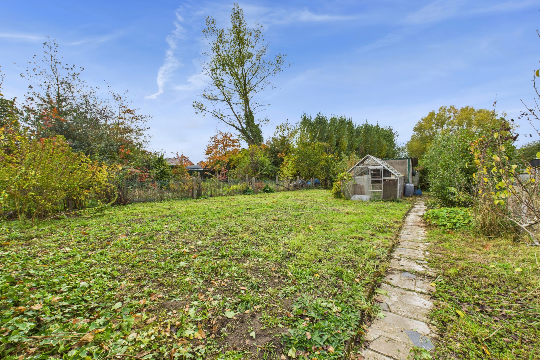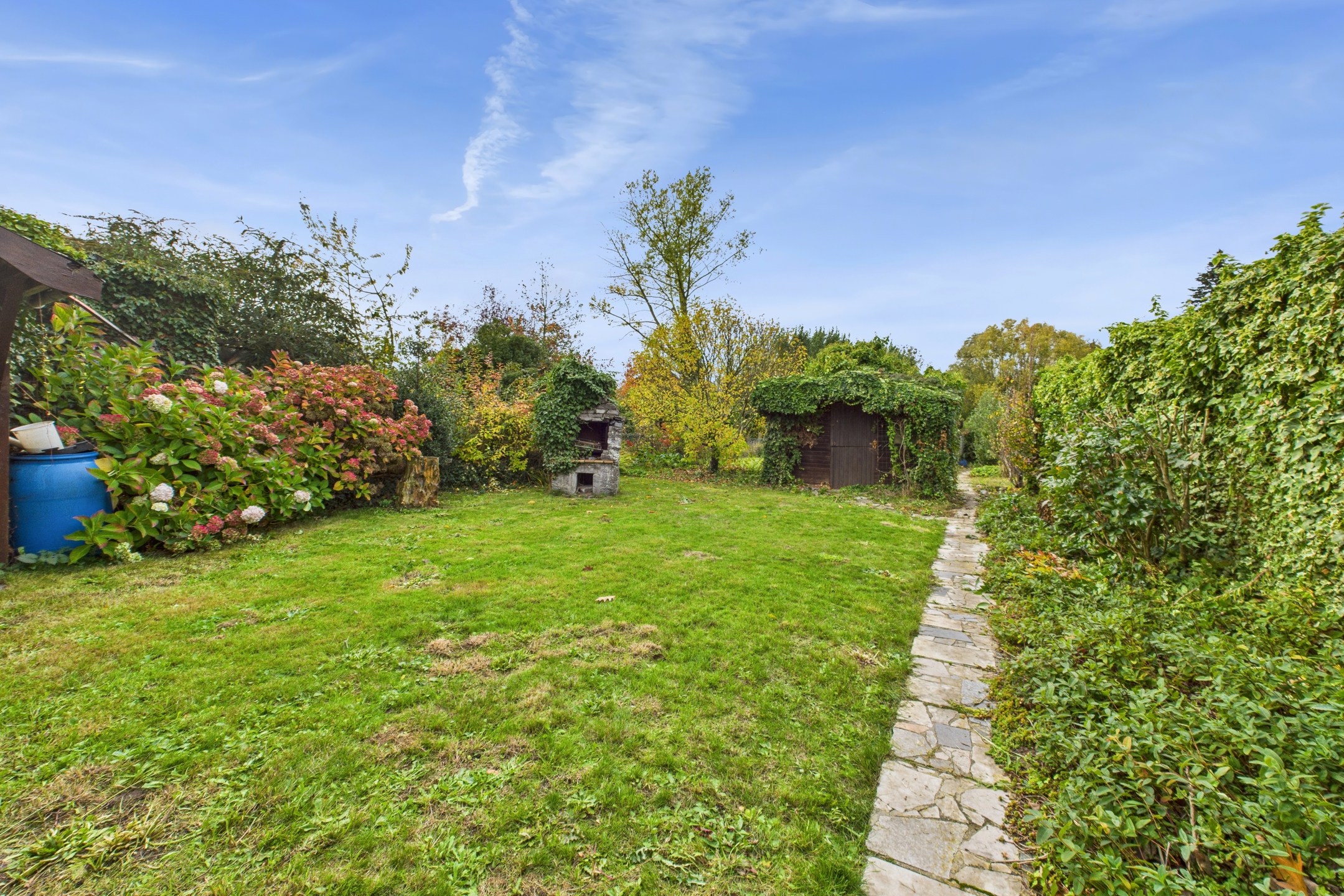 Extérieur : Une terrasse carrelée dont une partie couverte, un jardin clôturé et arboré de +/- 400m2, 2 abris de jardin en bois, une remise extérieure.