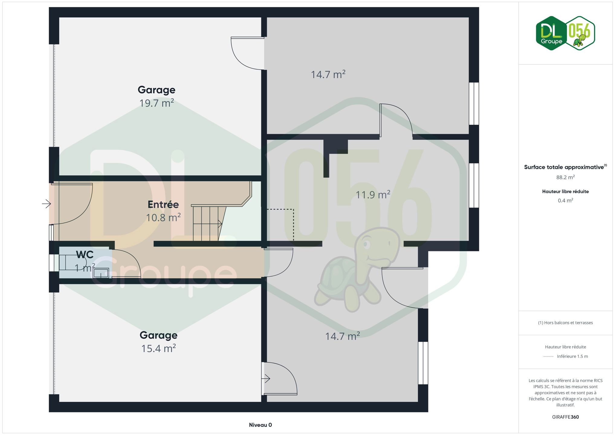 Au REZ : Ce plateau de ± 100 m² offre un vaste hall d’entrée sublimé par un escalier en granit, un WC avec lave-mains, ainsi qu’une buanderie avec espace chaufferie. Il dispose également de deux garages distincts pouvant accueillir chacun un véhicule. Deux espaces polyvalents, aménageables selon les besoins, peuvent faire office de caves, d’espaces de rangement, de bureaux ou d’ateliers. Enfin, le bien bénéficie d’un accès direct vers l’extérieur, garantissant praticité et confort d’utilisation.