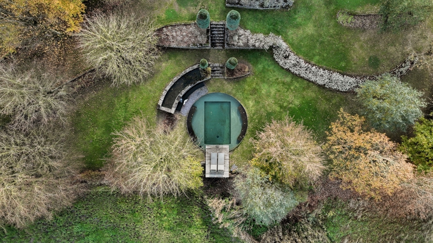 Implantée sur un terrain de 35 ares magnifiquement paysager, elle déploie un cadre de vie unique où la sérénité règne : piscine naturelle, étang à koï, allées de promenade et plusieurs terrasses, dont une couverte, permettant de profiter, au fil des heures et des saisons, de différents points de vue sur la nature.