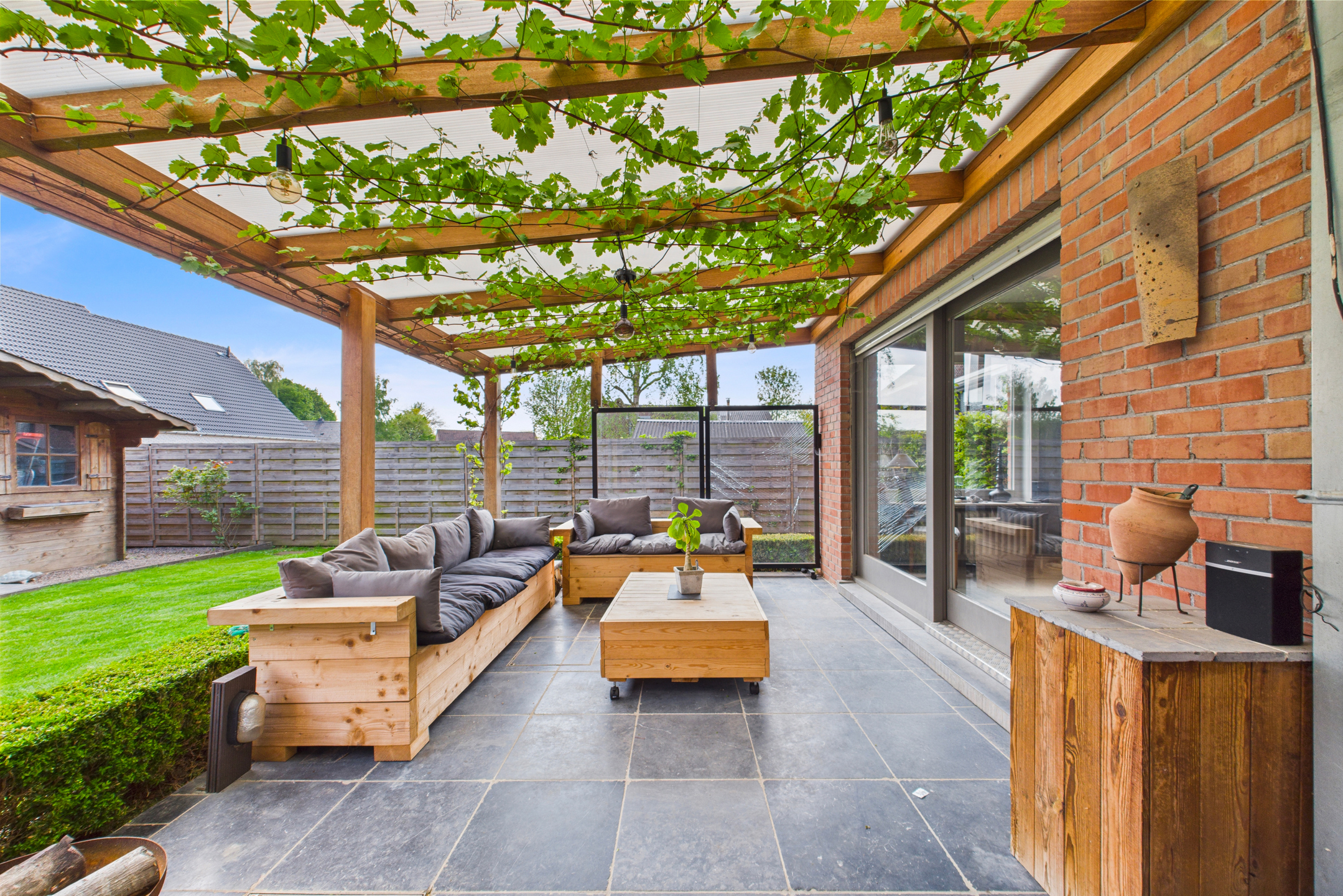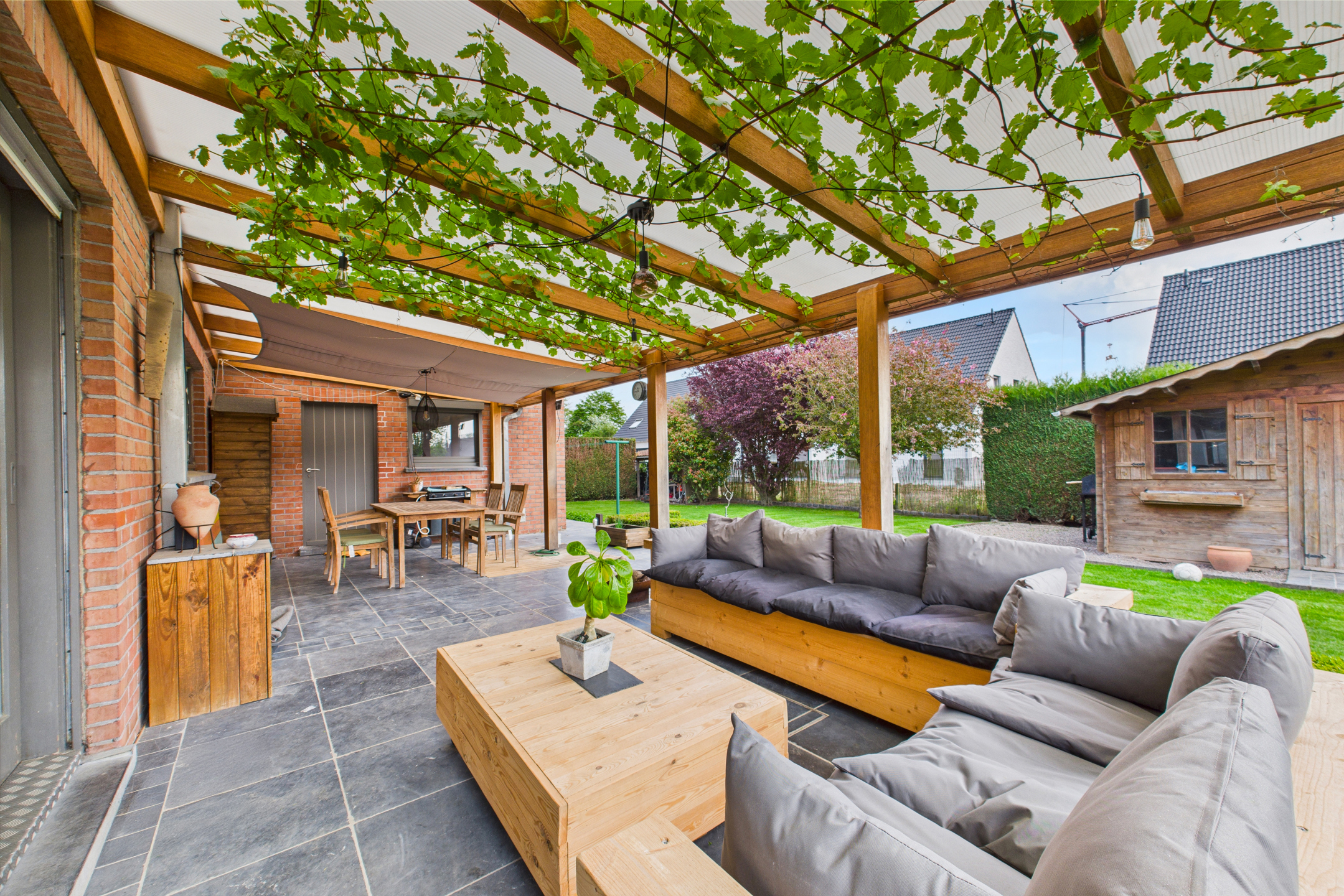 À l`extérieur, vous apprécierez la spacieuse terrasse carrelée et couverte, le jardin clôturé exposé sud-est, un abri de jardin en bois, un passage latéral, ainsi que des places de parking privatives et un carport.