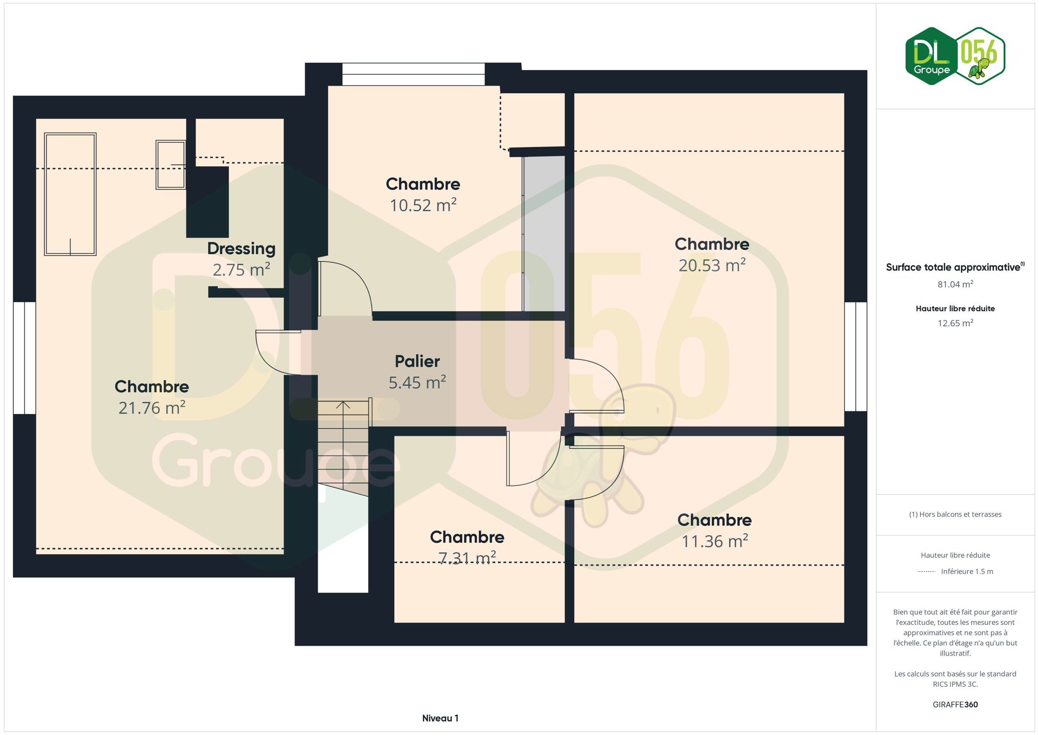 Au 1er étage, le hall de nuit dessert une suite parentale avec grande chambre, salle de bains (baignoire, meuble lavabo, WC suspendu) et espace dressing. Trois chambres supplémentaires offrent de belles possibilités.