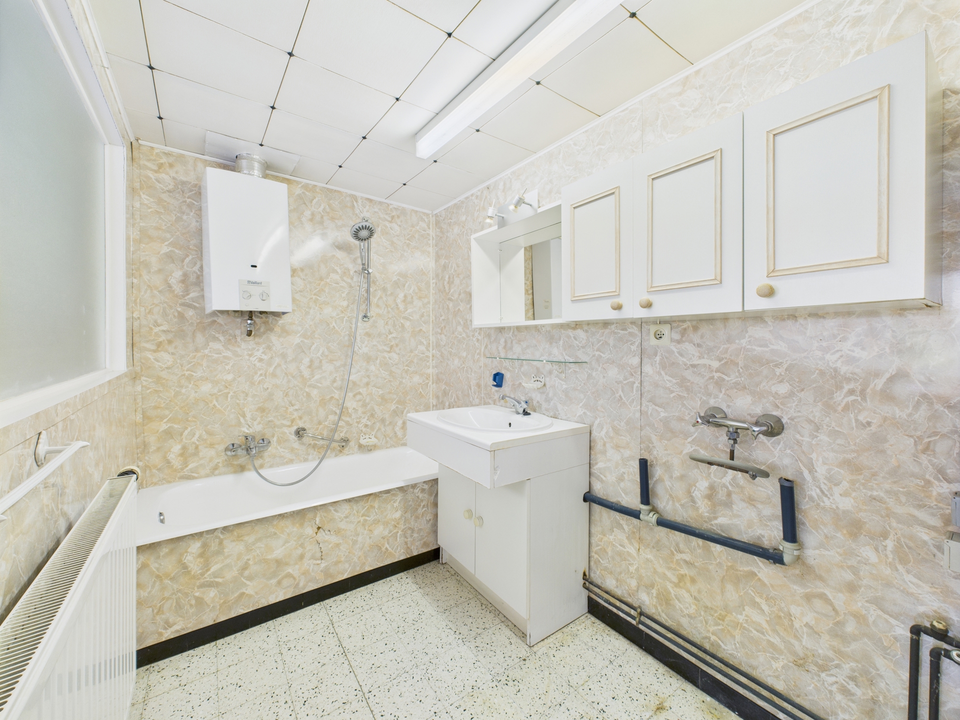 Le rez-de-chaussée comprend également une salle de bain, un WC séparé, une buanderie ainsi qu’un garage intégré.