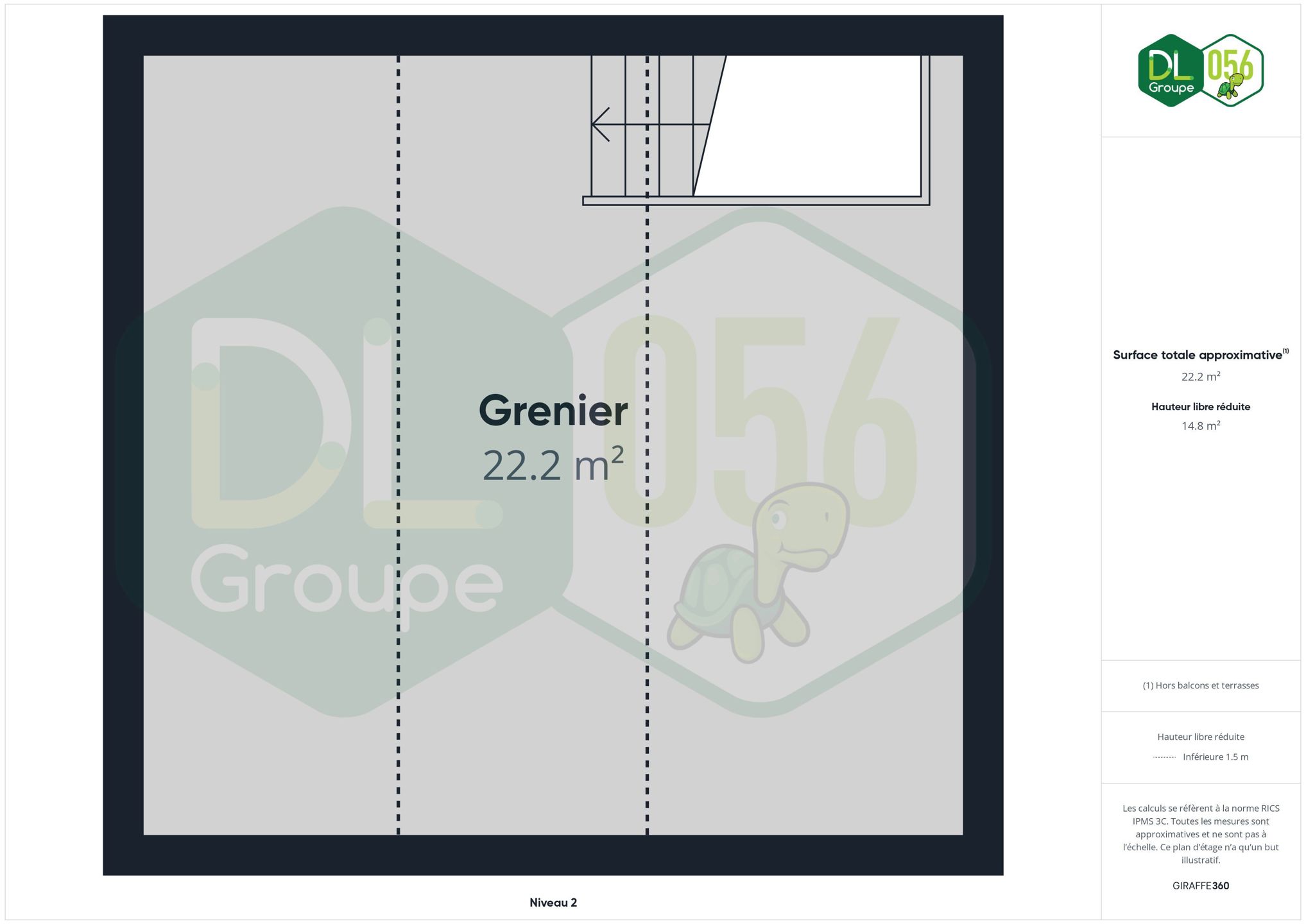 Au dernier niveau, un grenier avec Velux, accessible via un escalier fixe, offre un espace complémentaire.