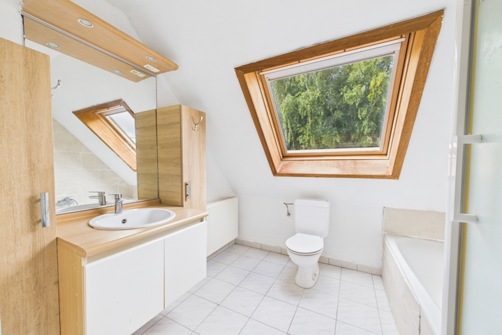 Au 1er étage : Hall de nuit desservant 3 grandes chambres à coucher de 19m2, 15m2 et 12m2, une salle de bains composée d’une baignoire, d’une douche, d’un meuble lavabo, d’un WC.