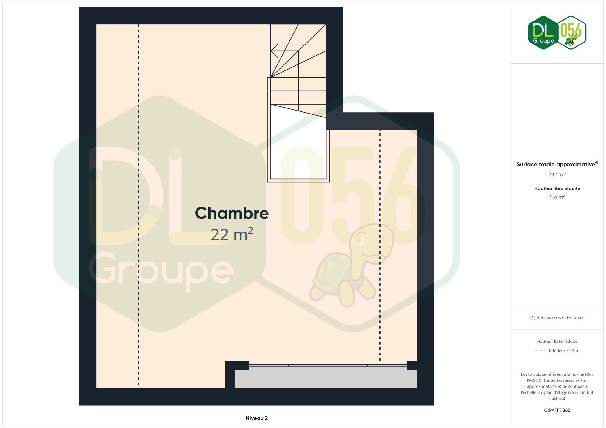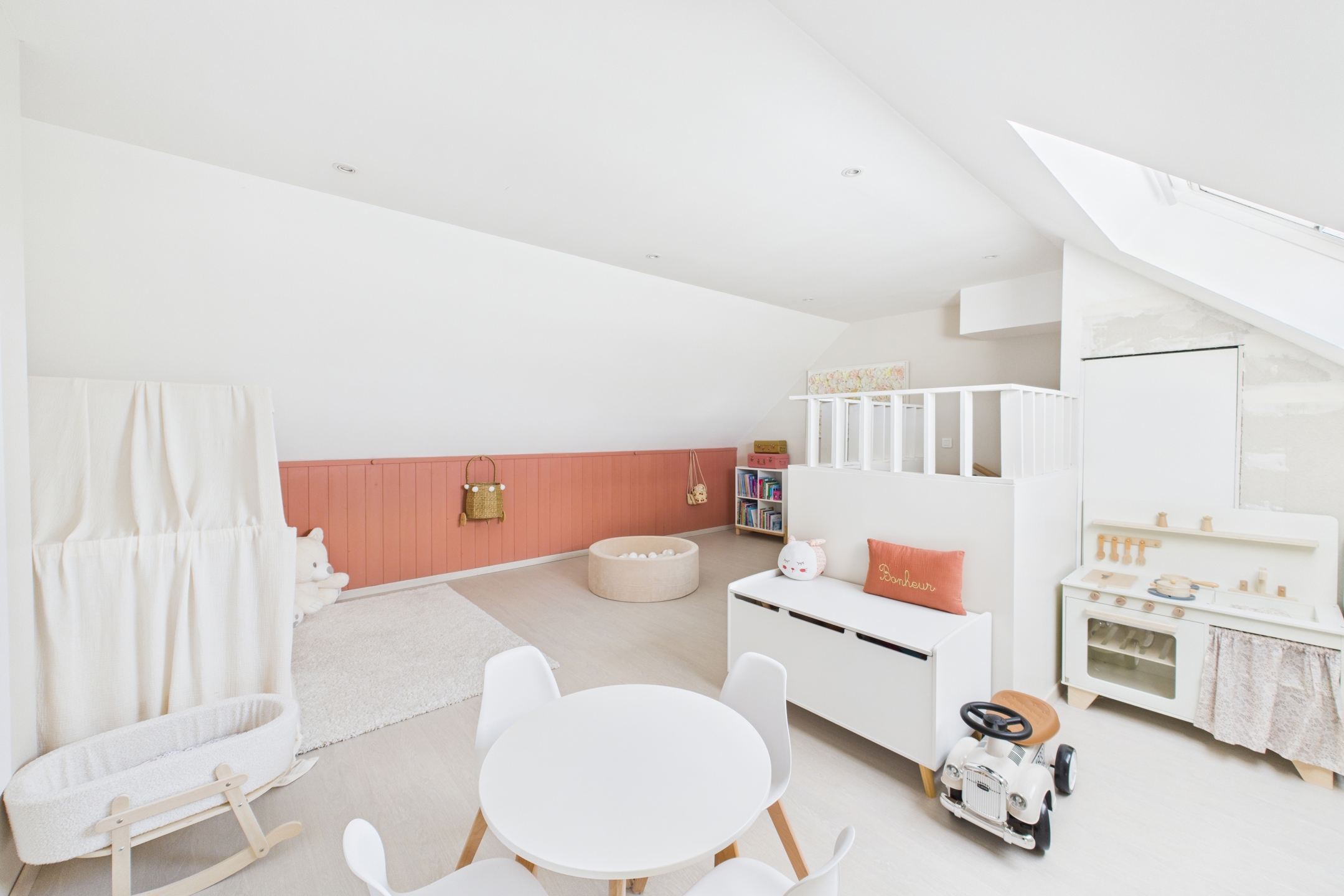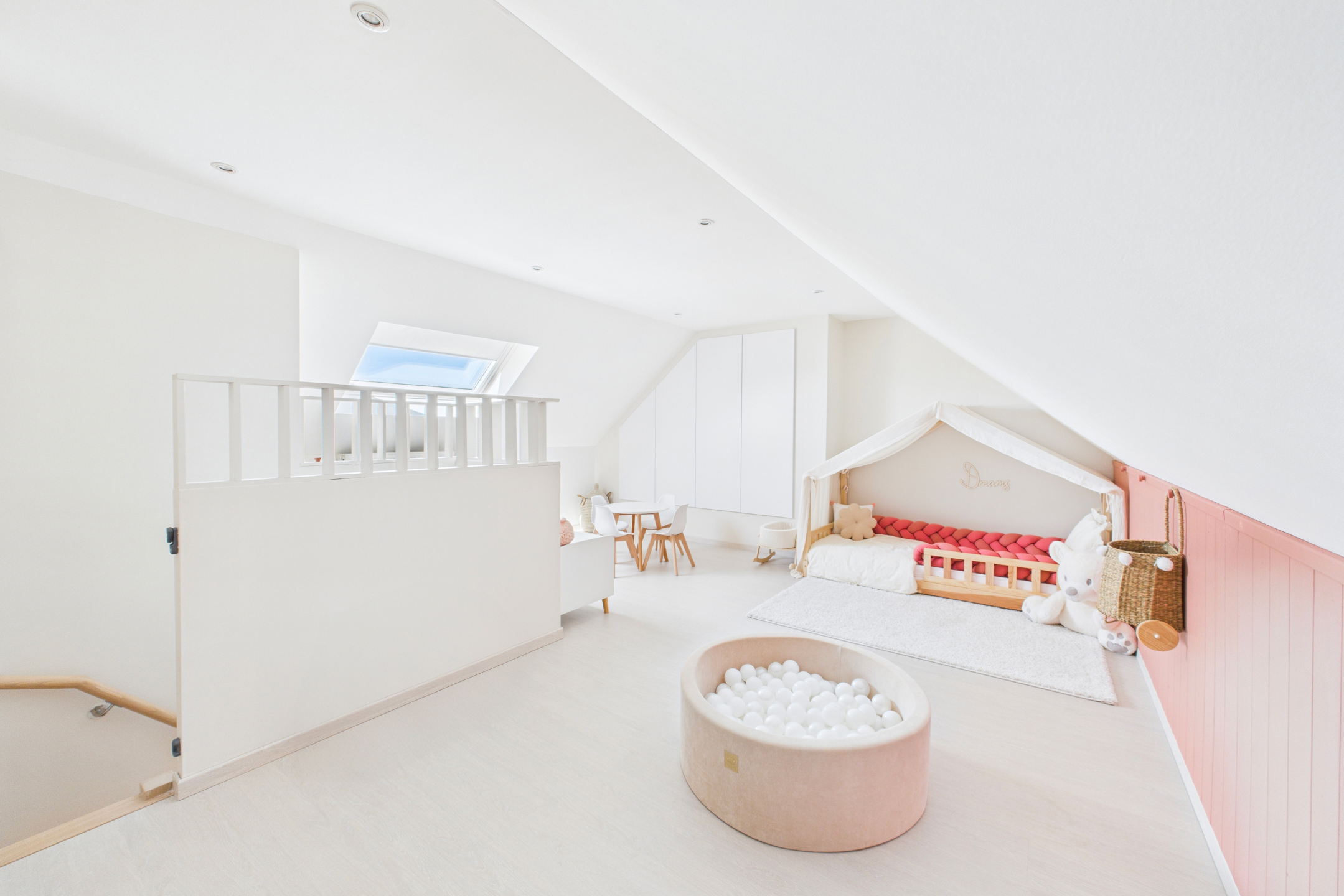 Au 2ème étage : Grand grenier aménagé en une 3e chambre à coucher de 22m2, avec l’avantage d’avoir un escalier fixe situé sur le hall de nuit.