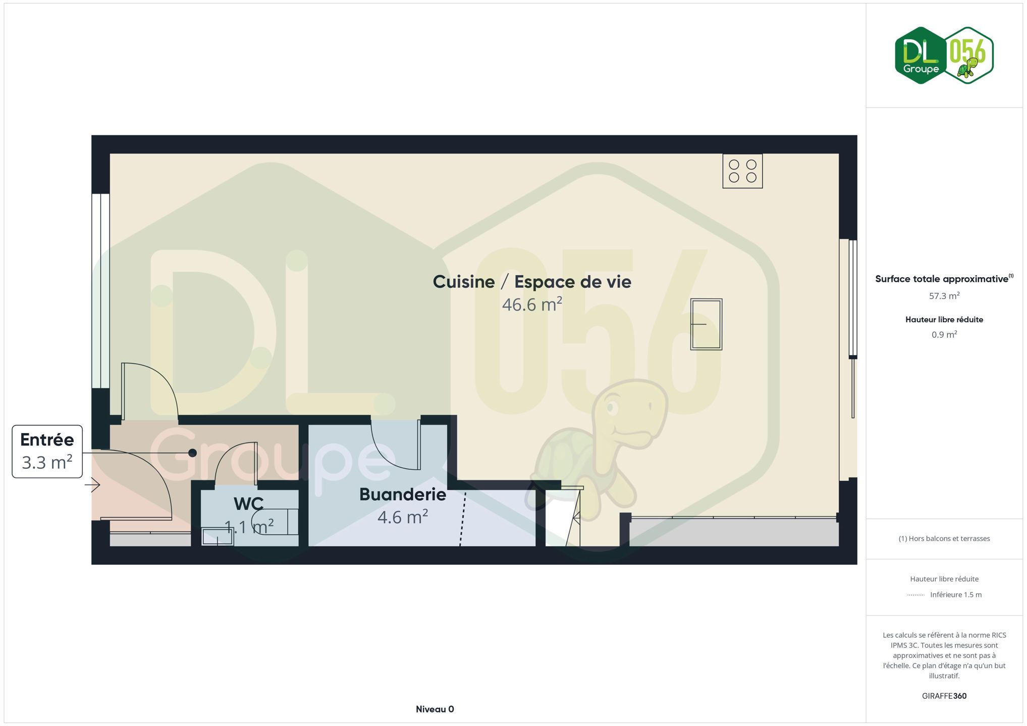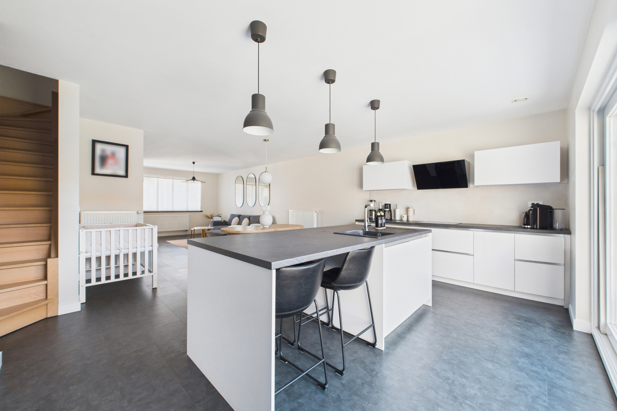 Au REZ : Un hall d’entrée avec coin vestiaire, un WC suspendu avec lave-mains, une magnifique pièce de vie baignée de lumière composé d’un séjour (salon et salle à manger), une belle cuisine équipée (plaque de cuisson, hotte, four, micro-ondes, lave-vaisselle, emplacement frigo américain, évier, ilot central avec coin repas et nombreux rangements), une buanderie/chaufferie vient compléter cet étage.