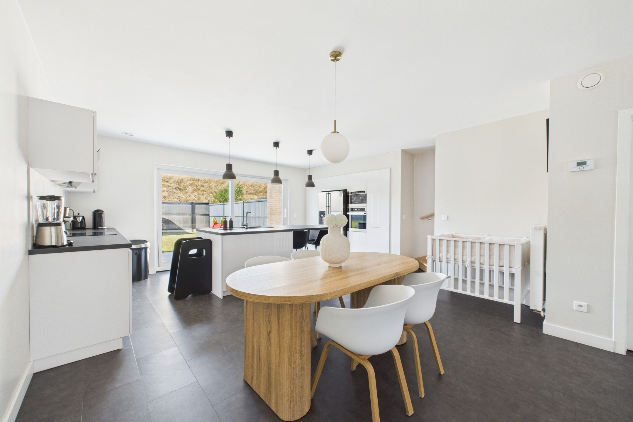 Jolie maison de construction récente idéalement située dans un clos résidentiel paisible et recherché, proche de toutes commodités (écoles, transports en communs, commerces, axes routiers, …), chauffage central au gaz avec chaudière à condensation de la marque « Vaillant », boiler relié directement sur la chaudière, châssis en PVC double vitrage avec persiennes, carrelage moderne au REZ, parquet dans les chambres, citerne d’eau de pluie de 10.000L avec groupe hydrophore raccordé sur les machines à laver, toilettes et robinet de service, VMC double flux, électricité conforme, VERTIBLE COUP DE CŒUR !