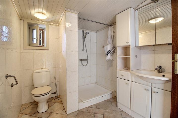 Au rez-de-chaussée: Hall d`entrée, séjour avec salon et salle à manger offrant une cheminée avec un feu au bois, cuisine semi-équipée avec taques et hotte et espace coin repas avec insert à gaz, salle de bains carrelée et faïencée avec douche, meuble lavabo, WC et coin machine à laver, petite véranda, terrasse et jardin clôturé avec chalet. Cave saine.